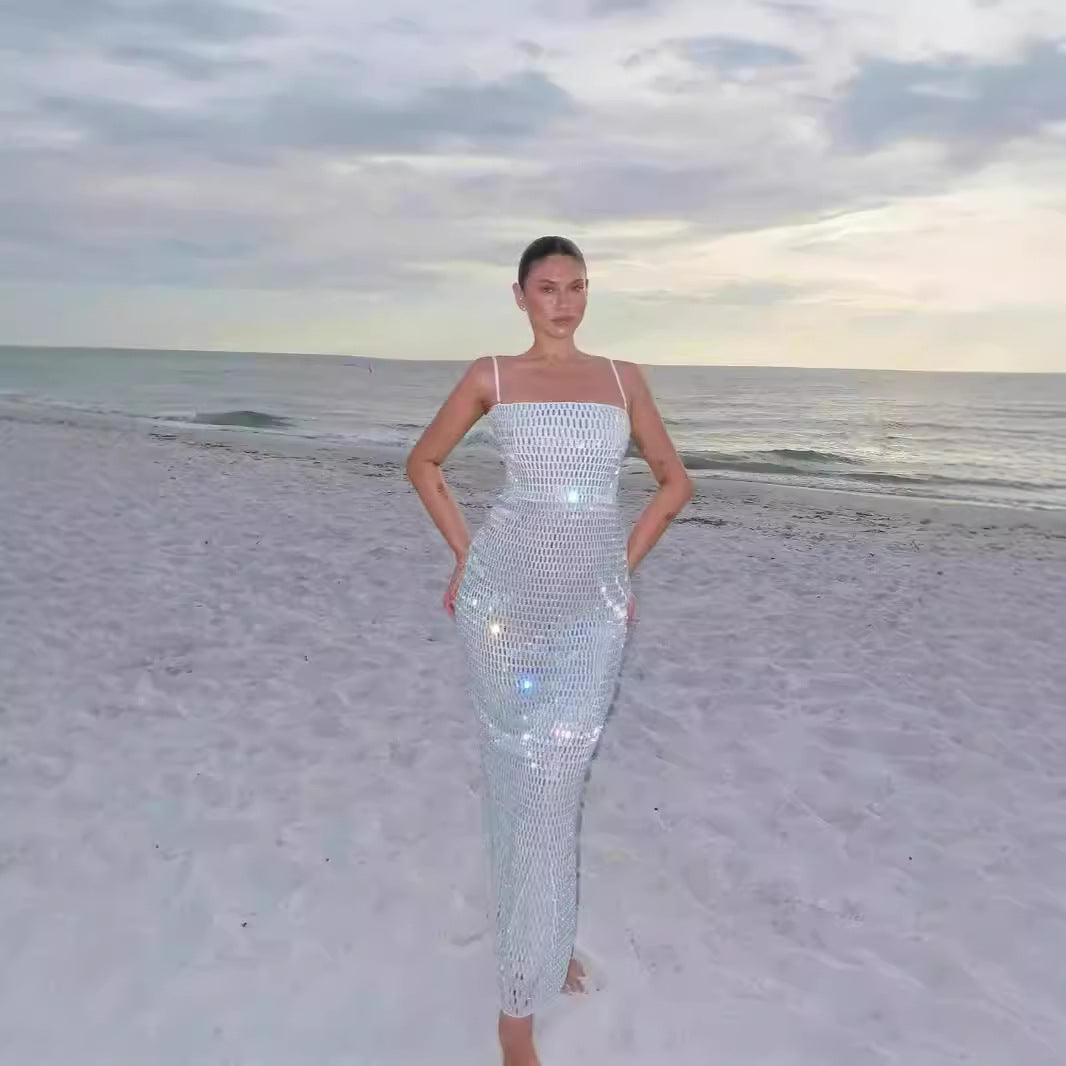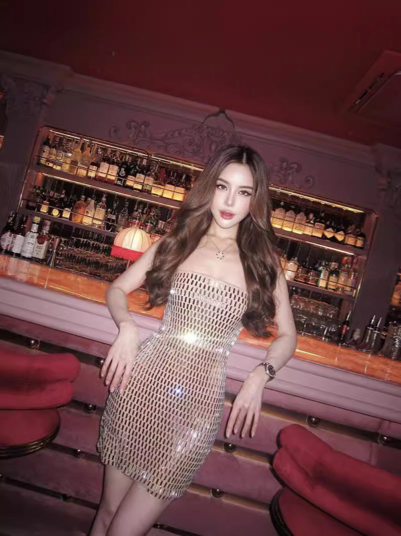 Dadizhimu Babes Naked Flashing Water Drill Waist Sexy Boobs Dress High-Sensing Thin Ass Skirt