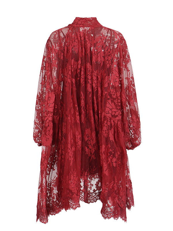 Dadizhimu Beauty Tea Break Dress 2025 Spring New Hollow Lace Loose Swing Long Sleeve Ribbon Dress Dress Woman