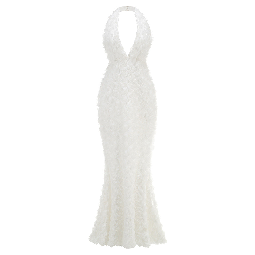 Dadizhimu Color Sexy Dark V Bareback Dress Woman High-End New Flower Design Fishtail Party Dress