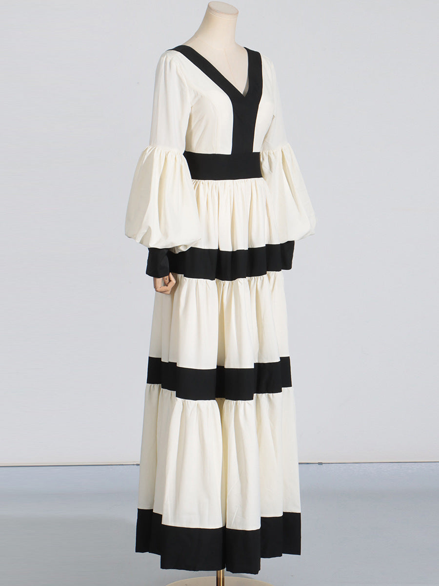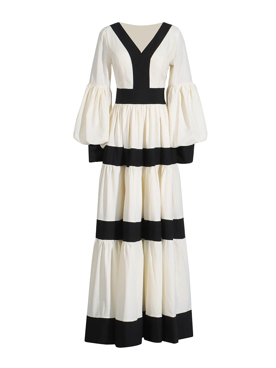 Dadizhimu Court Style Bumping Color Splicing Dress 2025 New Fashion High-End Feeling V-Neck Dress Dress Woman Trend