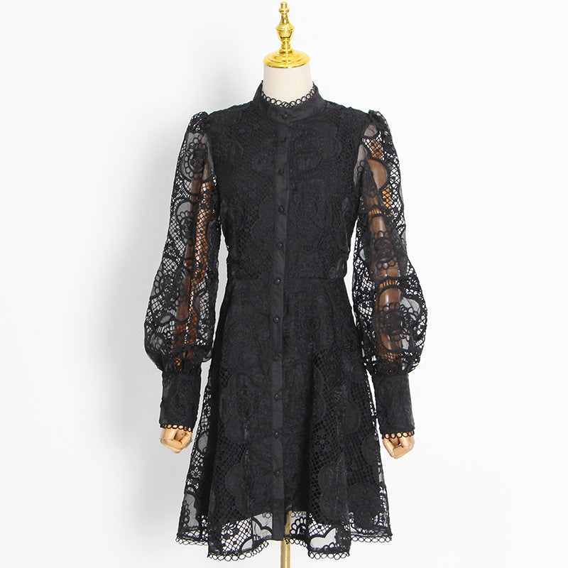 Dadizhimu Court Style Dress 2025 Spring New Embroidery Lace Niche Design Feeling Waist Thin Dress Woman