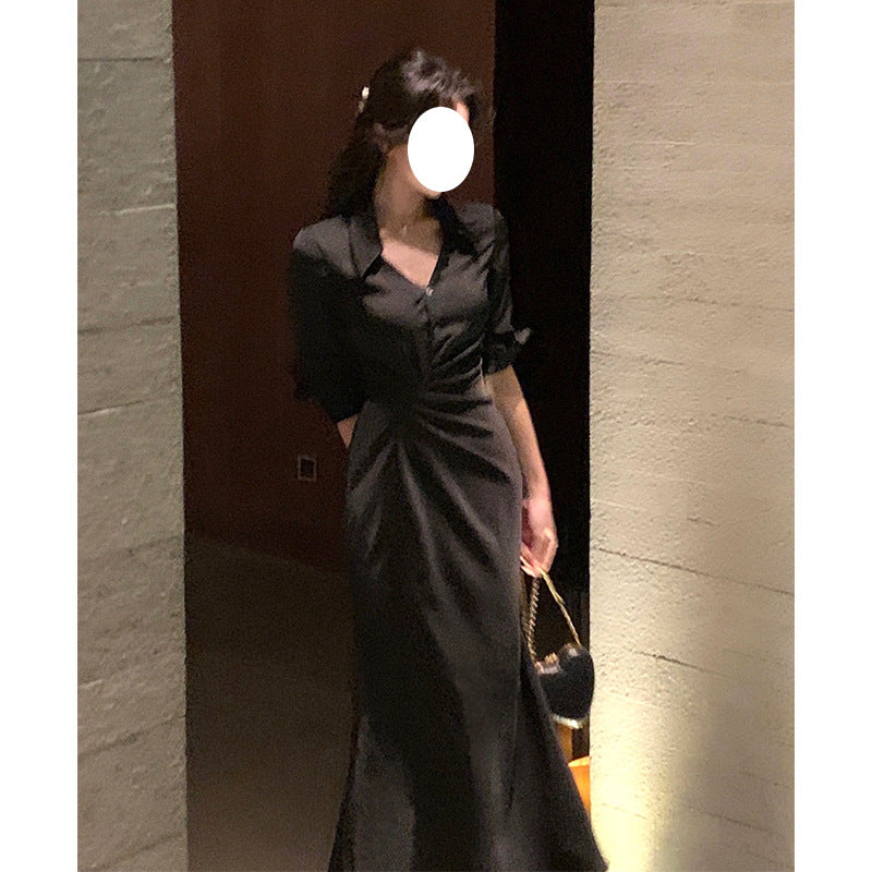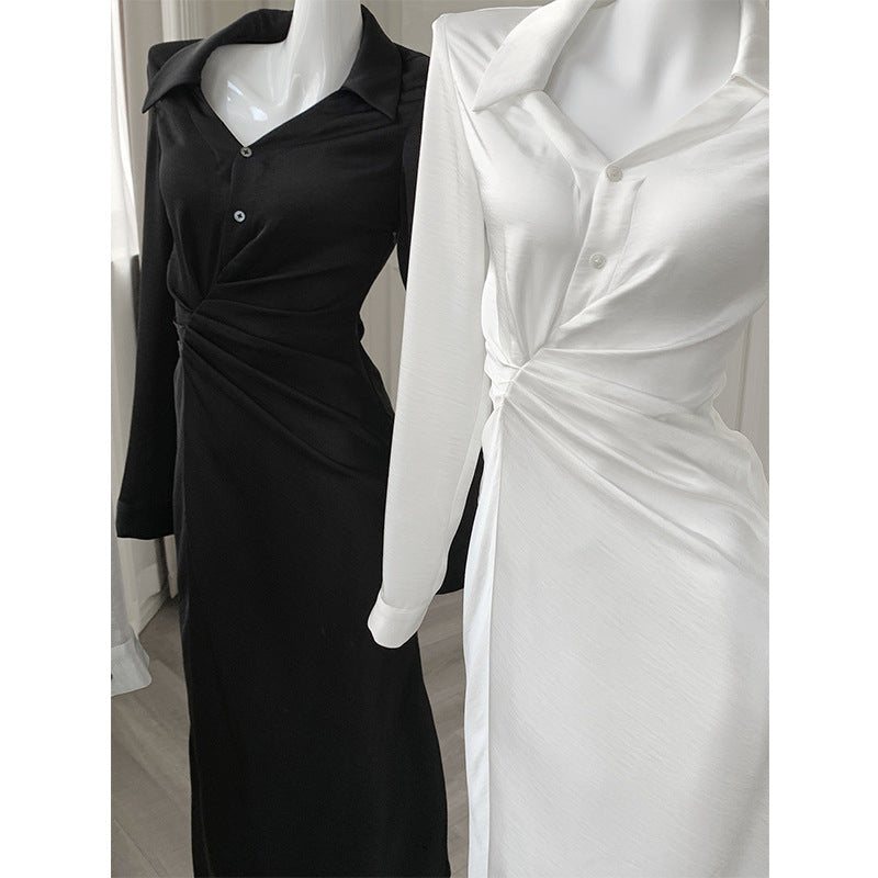 Dadizhimu Design Sense Of The Rice White V-Neck Shirt Dress Gentle Temperament Female Folds To The Waist Thin Fishtail Dress