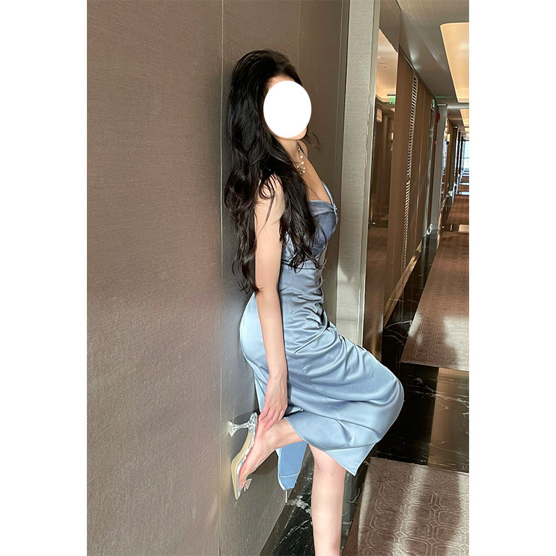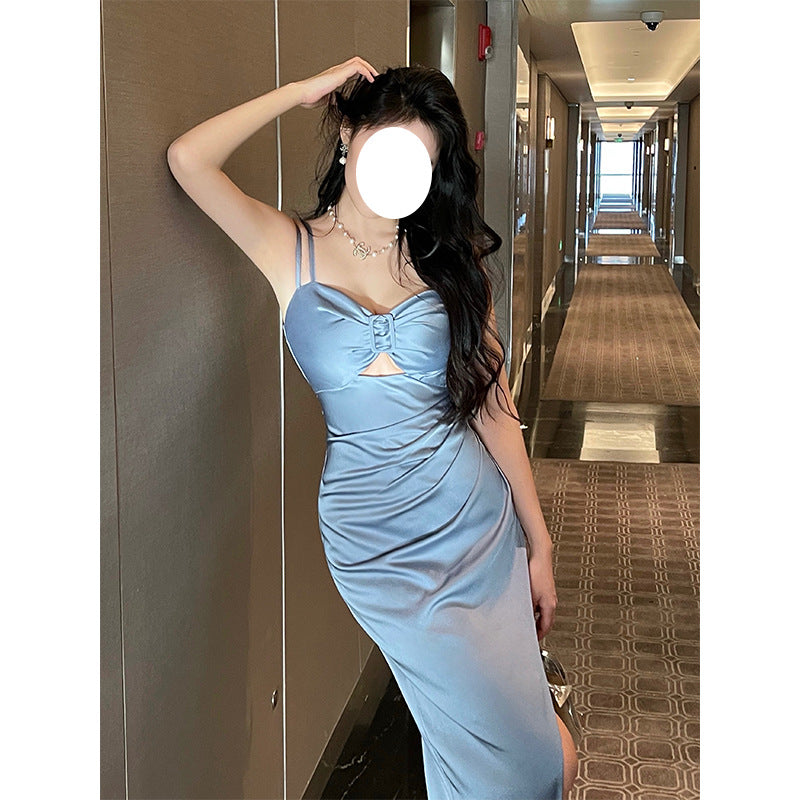Dadizhimu Famous Temperament Dress Dilluminated Lake Water Blue Fading Nipple Skirt Sling Dress