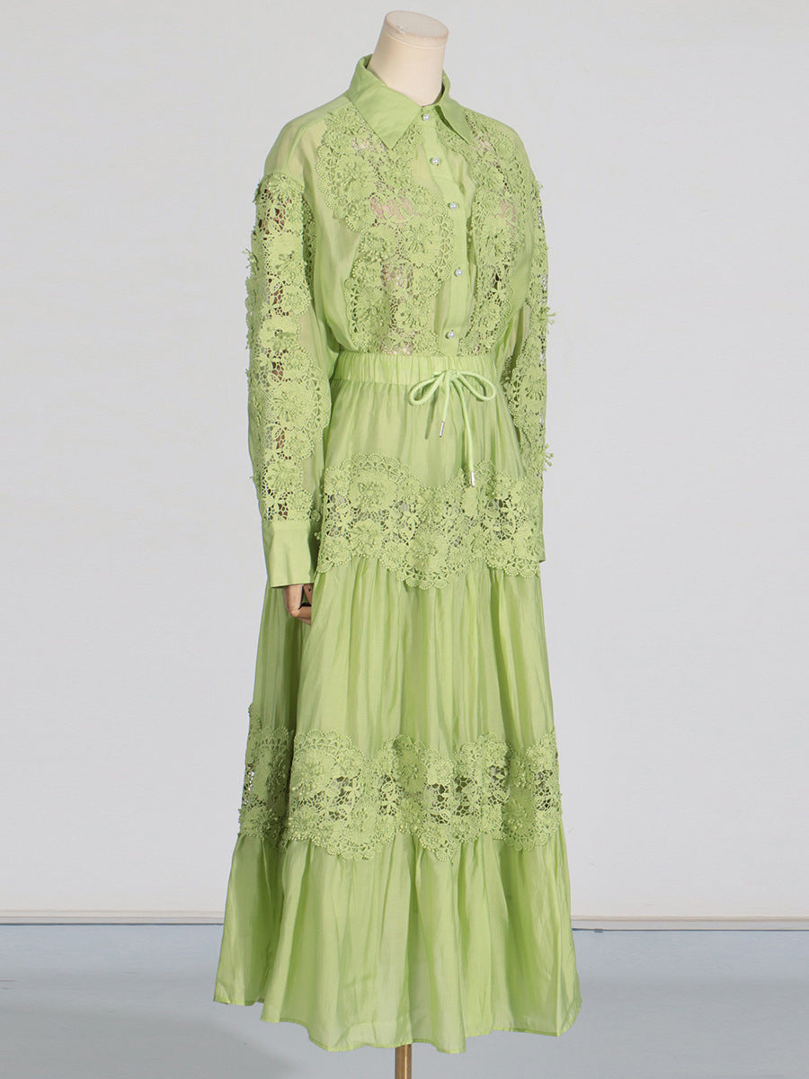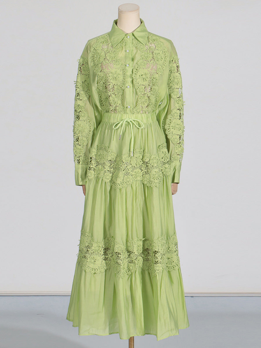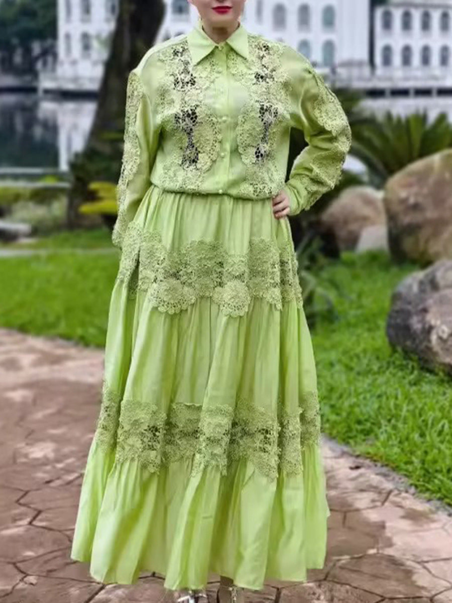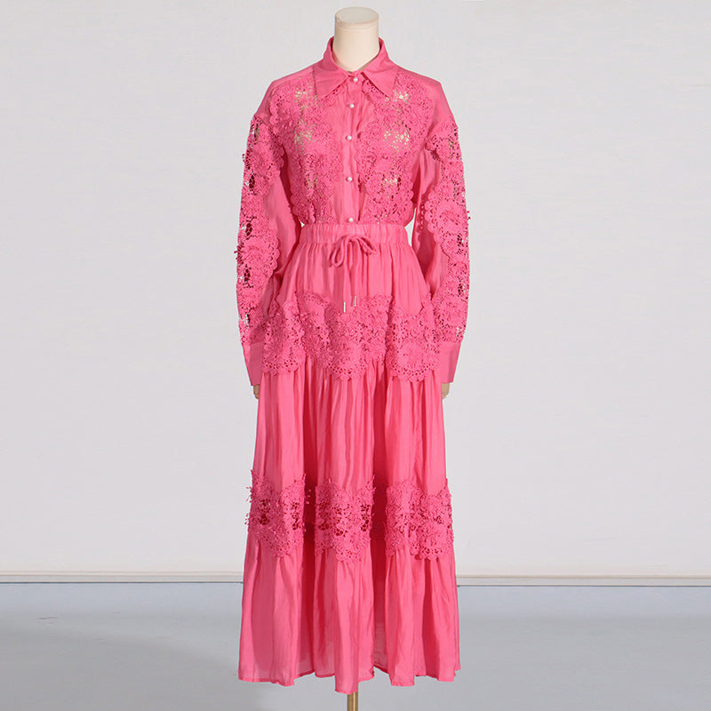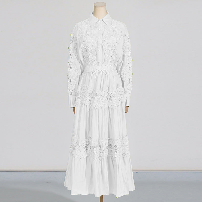 Dadizhimu Fashion High-End Set Women's Clothing 2025 Spring New Collar Hollow Shirt High Waist Half-Dress Women's Winter