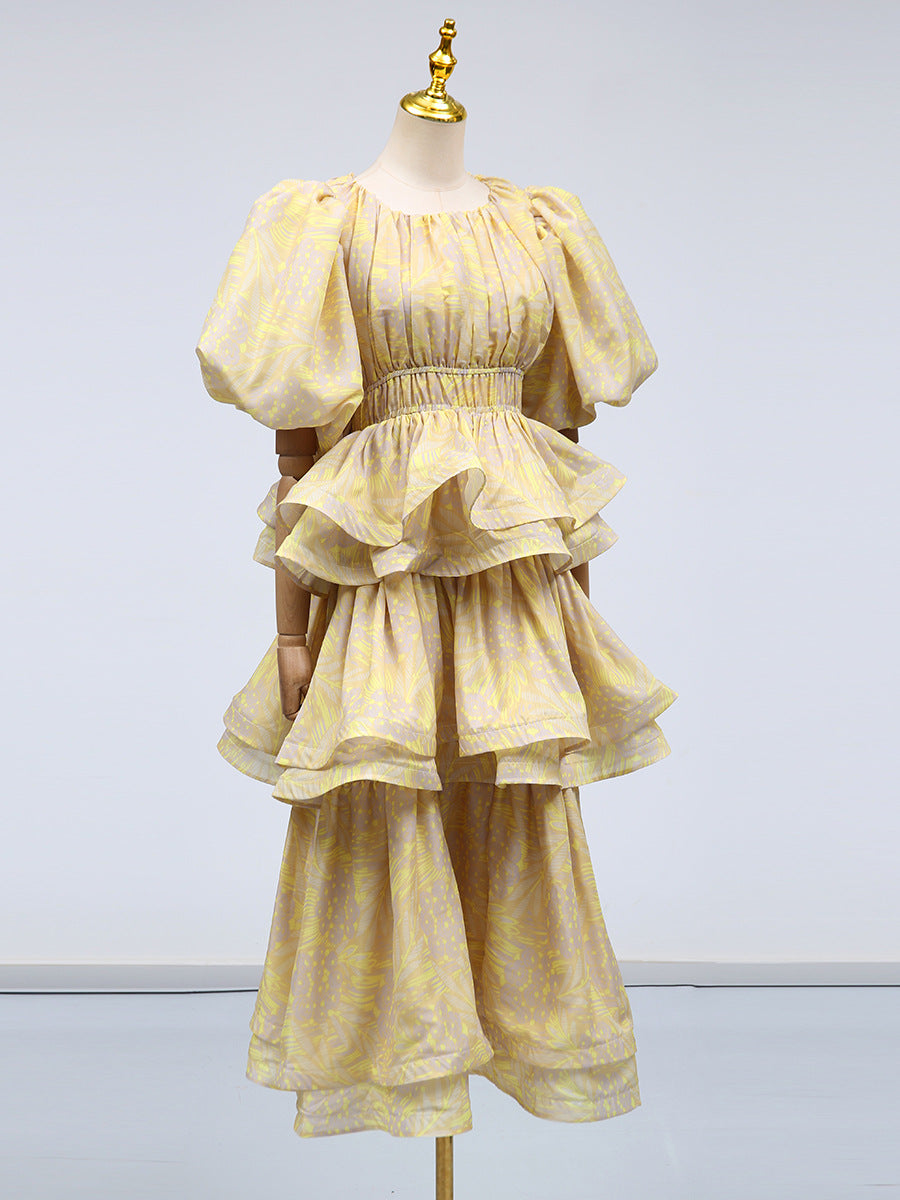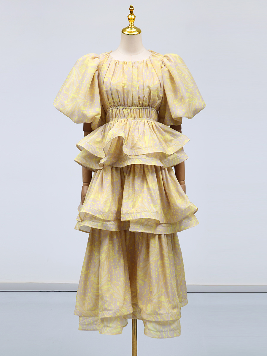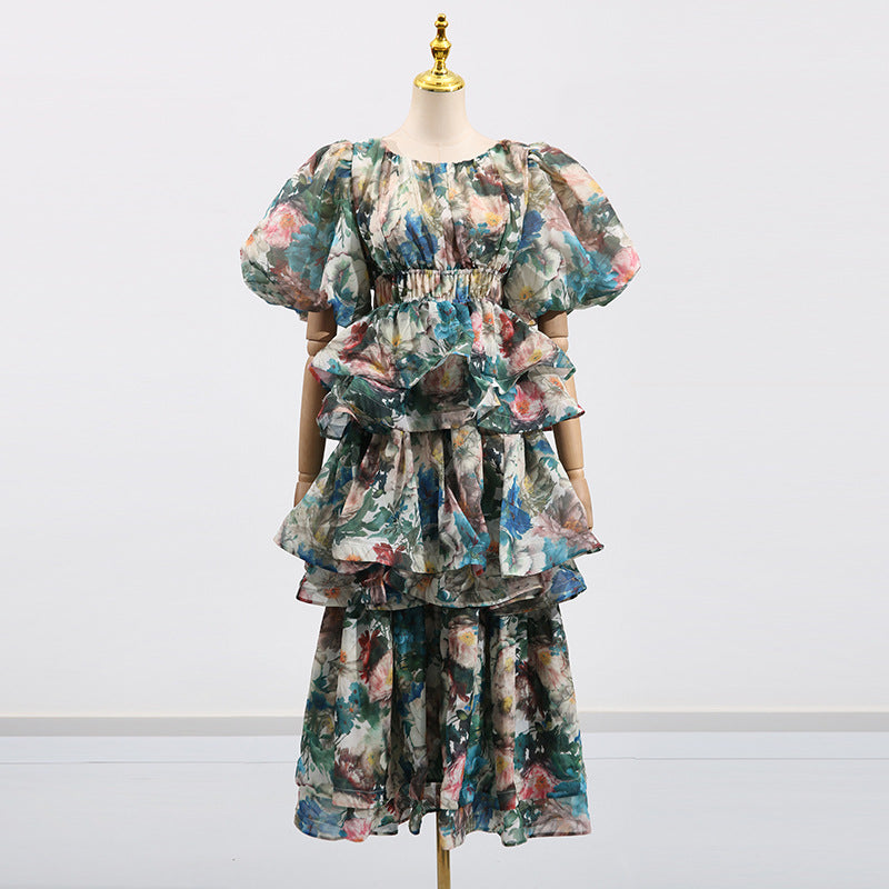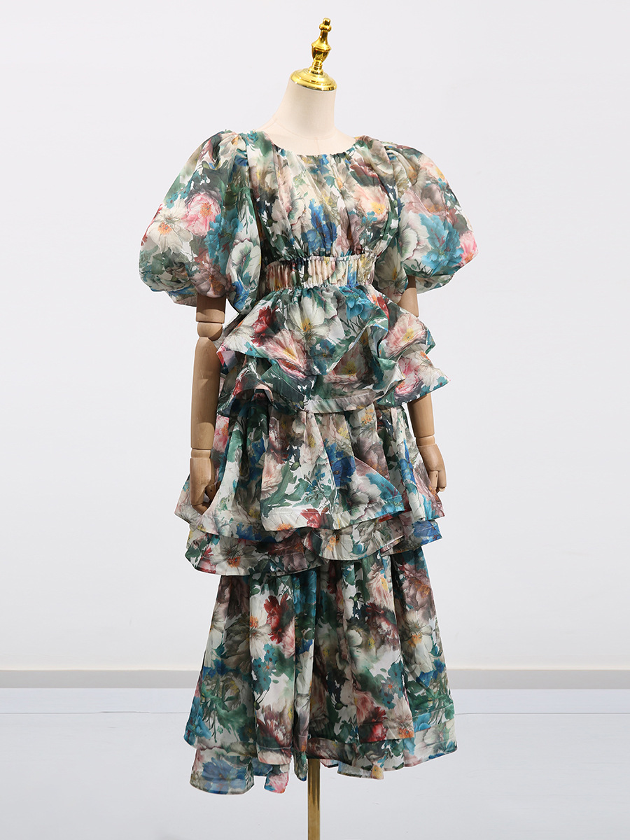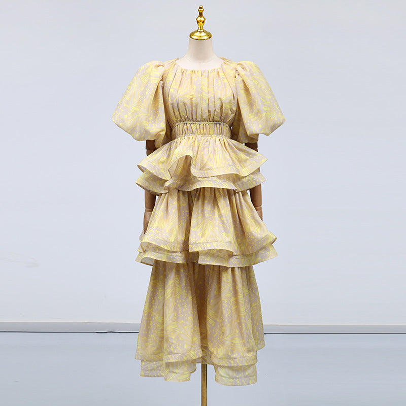 Dadizhimu Female Summer High Sense 2025 New Fashion Style Multi-Layer Lotus Leaf Side Temperament Long Dress Dress Woman
