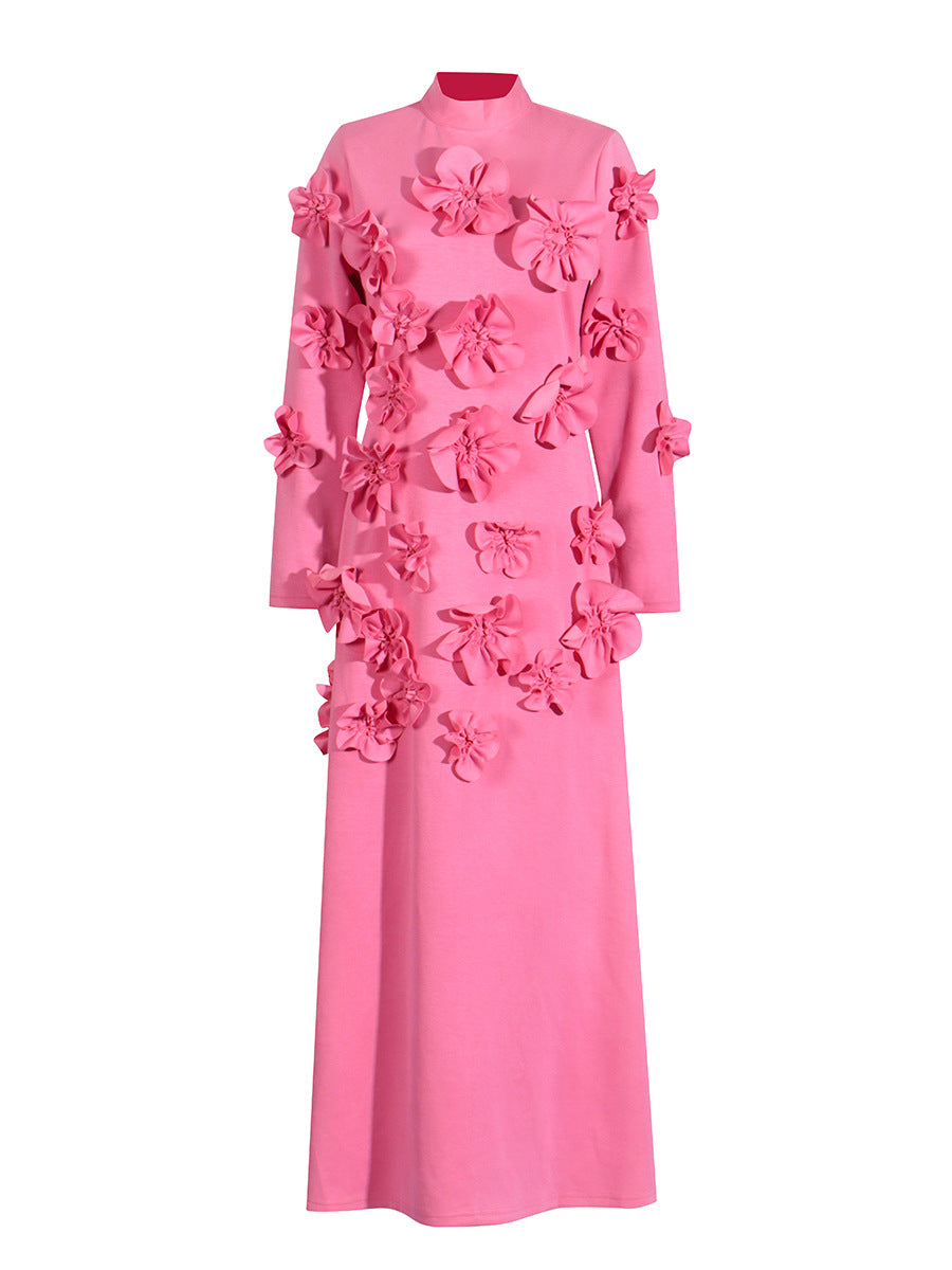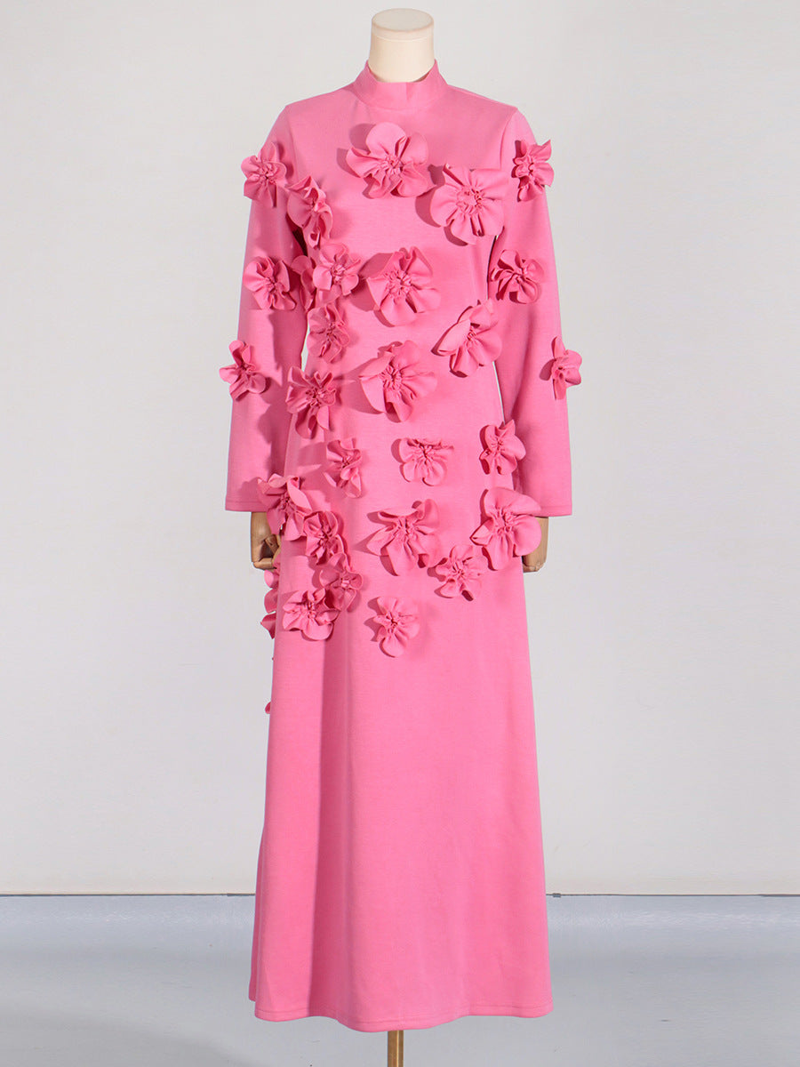 Dadizhimu Flower Splicing Dress Spring 2025 New High-End Holiday Style Lead Long-Sleeved Three-Dimensional Dress Woman