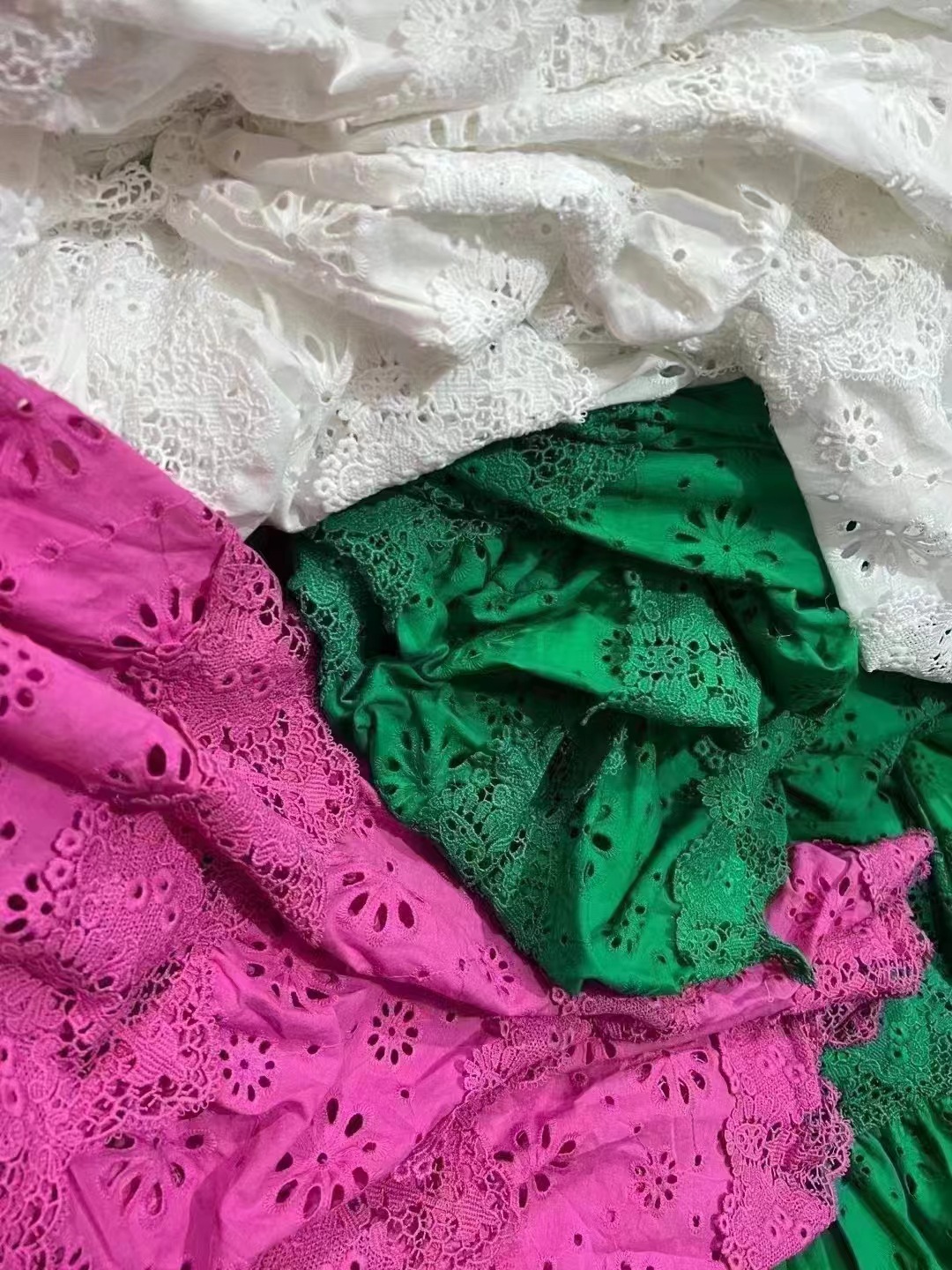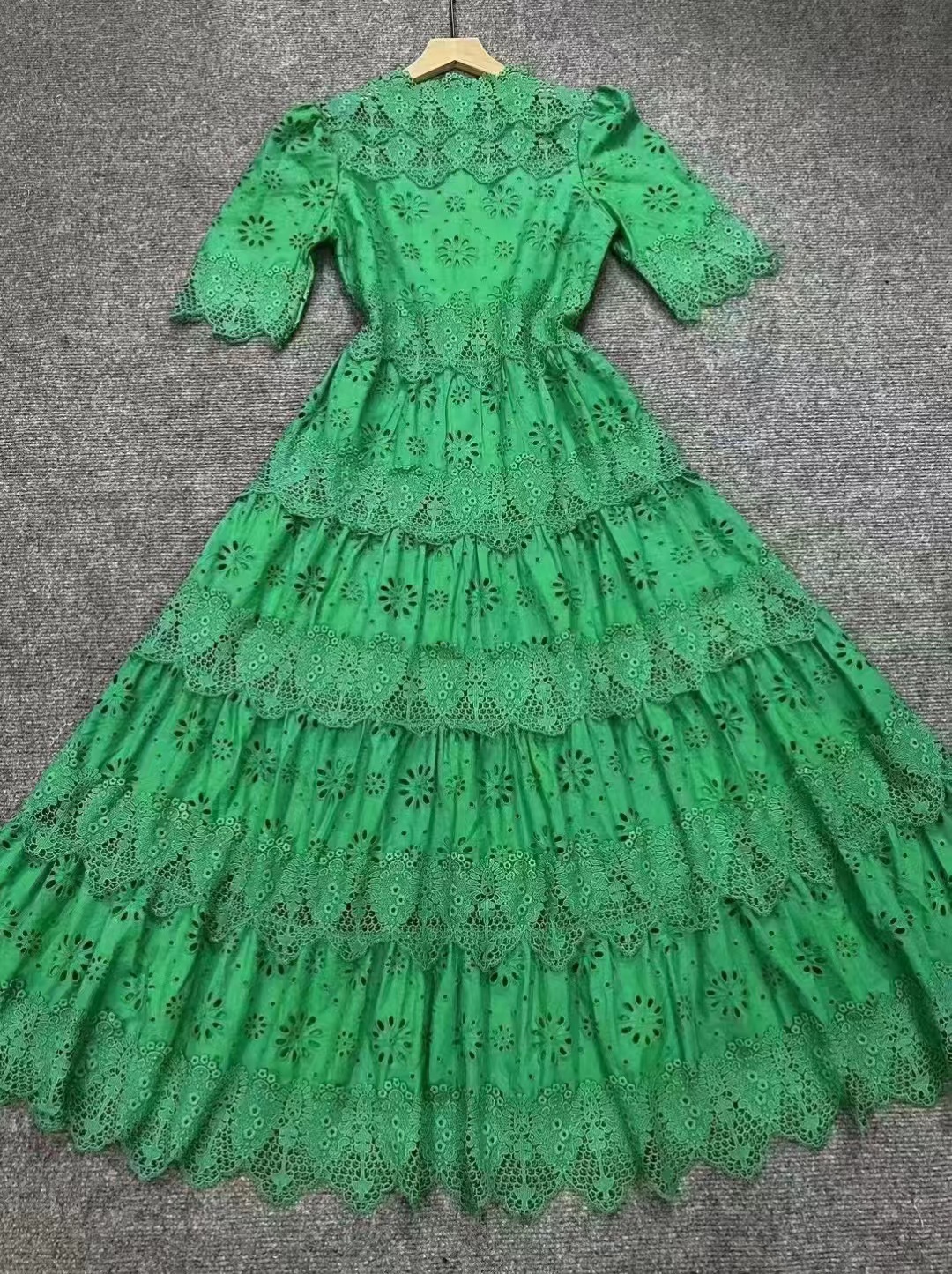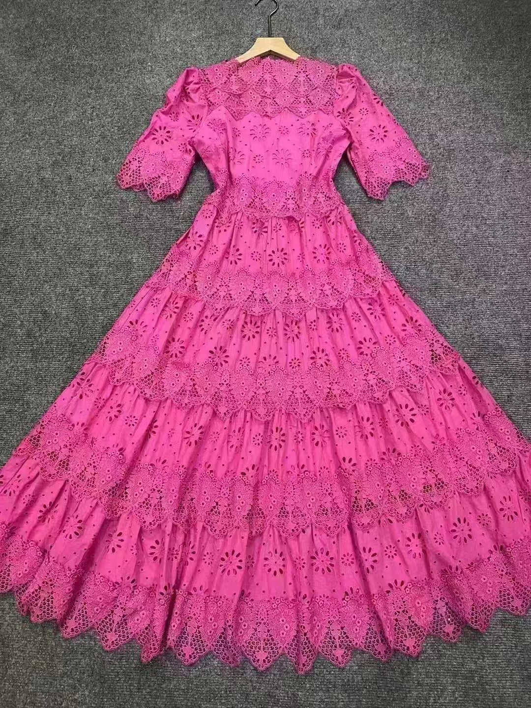 Dadizhimu For The New Women's Fashion Temperament Round-Neck Short-Sleeved Heavy Industry Embroidered Lace Lace Skirt