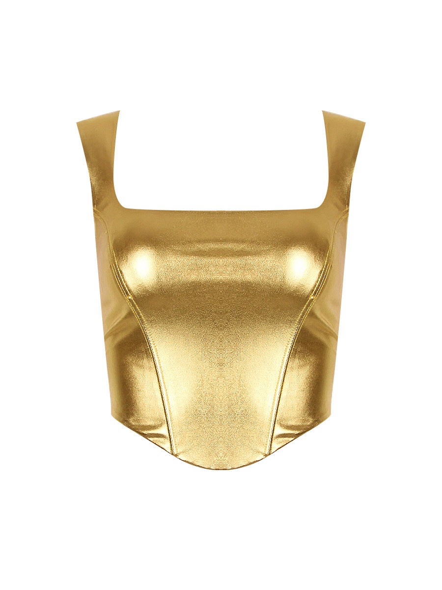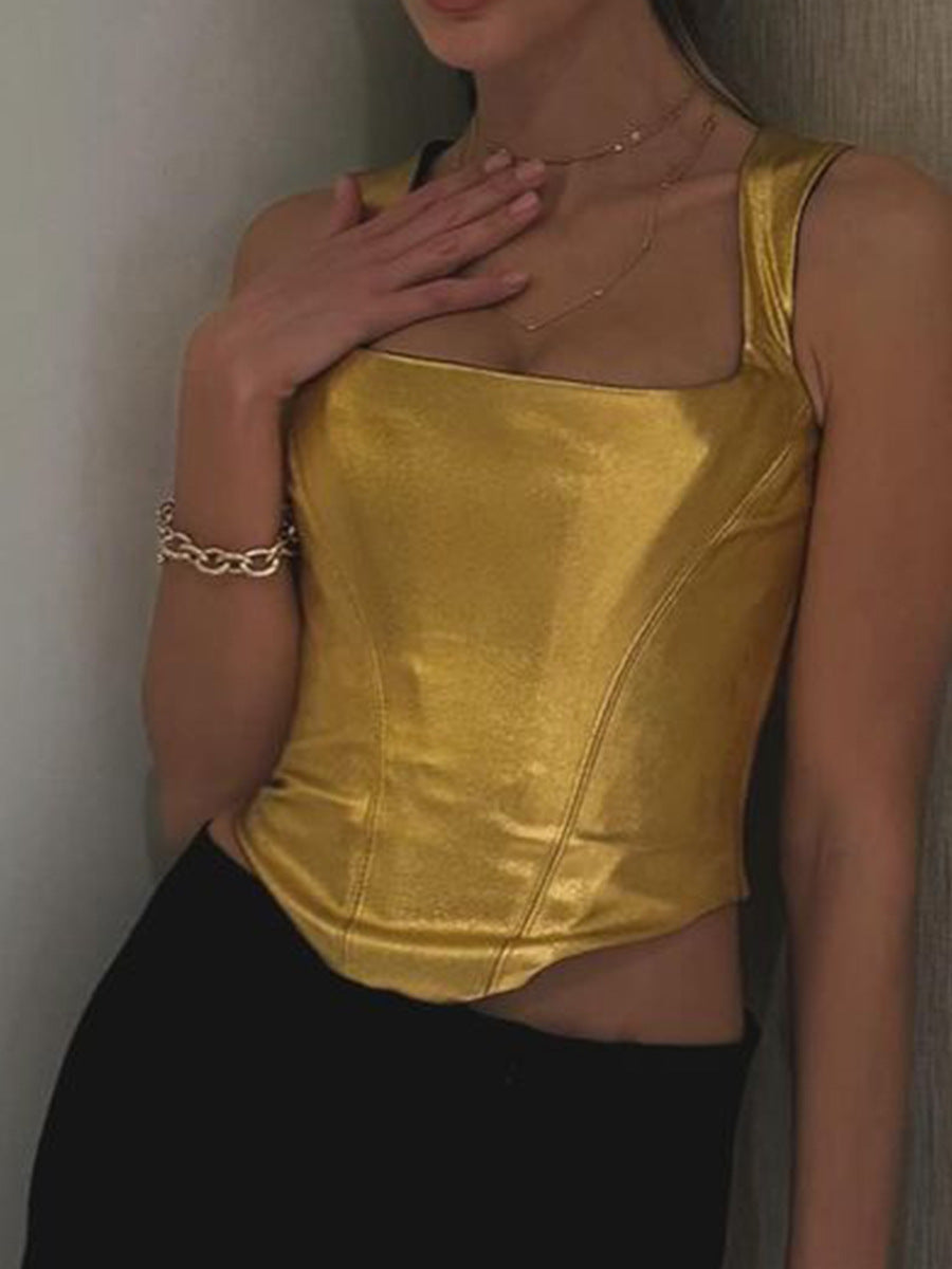 Dadizhimu Girls Wear Women's Clothing New Golden Small Suspension Vest Girl With Umbilly Umbilly Short Top