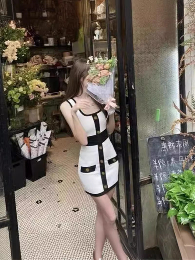 Dadizhimu High-Quality Female Fashion Knitless Sleeveless Vest Sling Dress With Color Bag Skirt