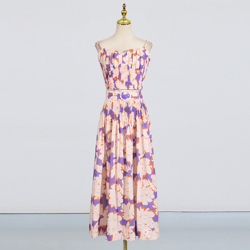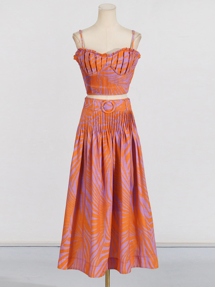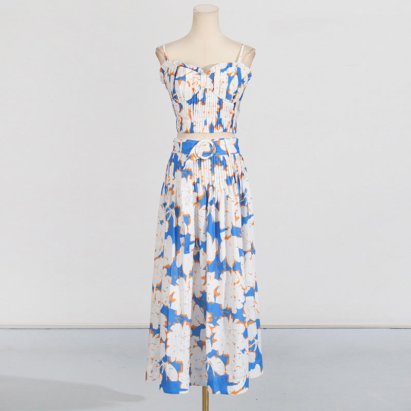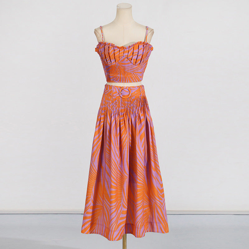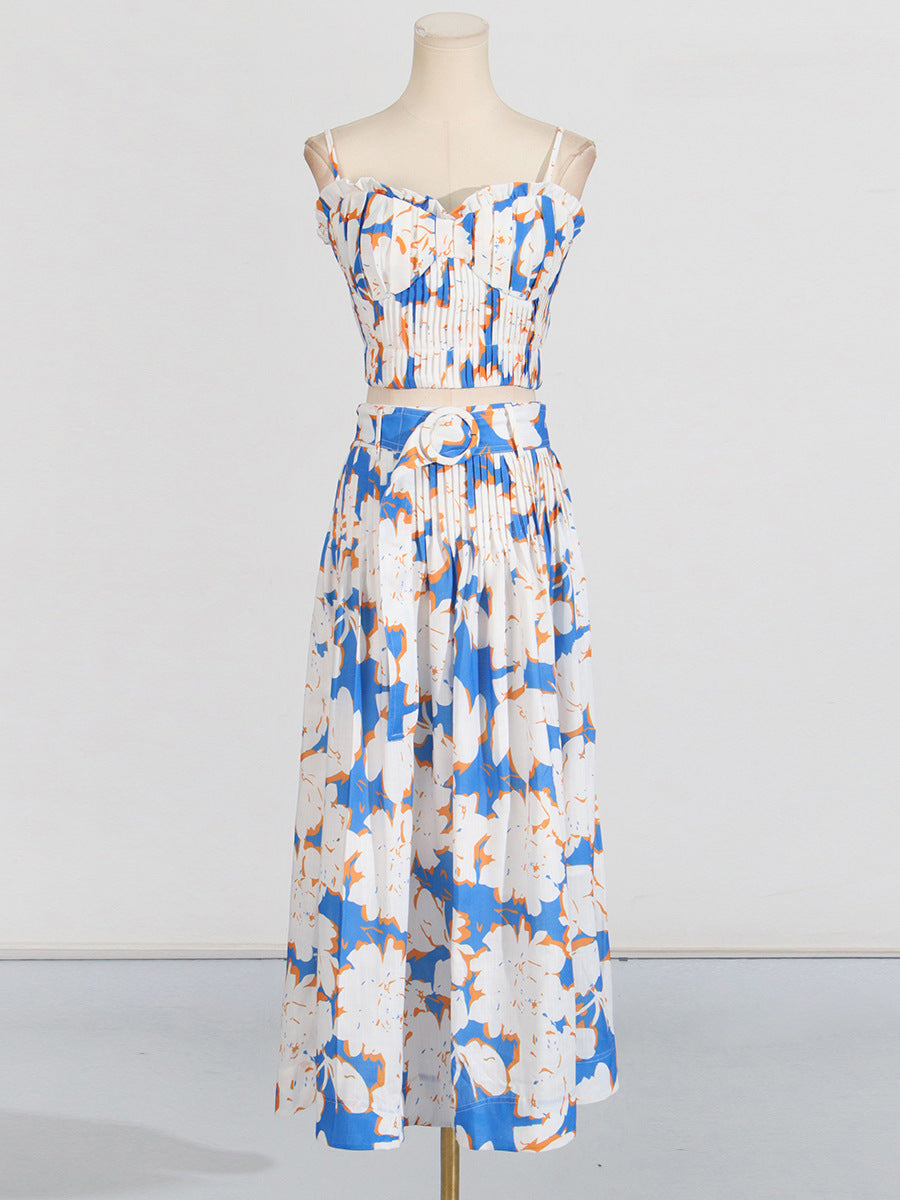 Dadizhimu Holiday Style Set 2025 Summer New Printed Corset + High Waist Pressure Skirt Half-Body Dress Two-Case