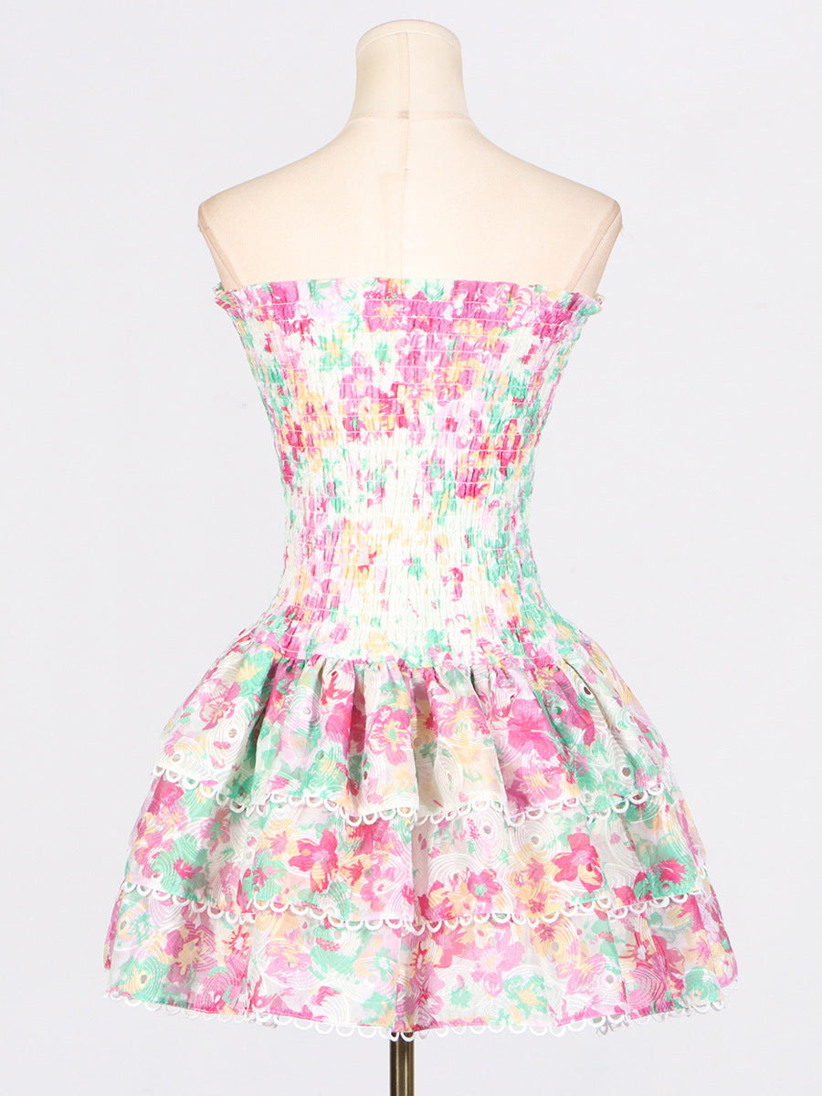 Dadizhimu Holiday Wind And Folding Skirt 2025 Spring New Printing Chest Bare Back To Thin Dress Woman Trend