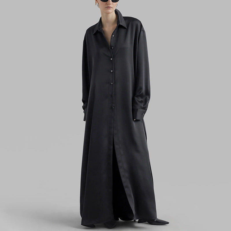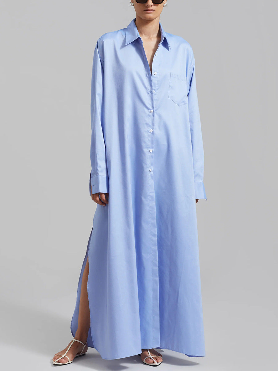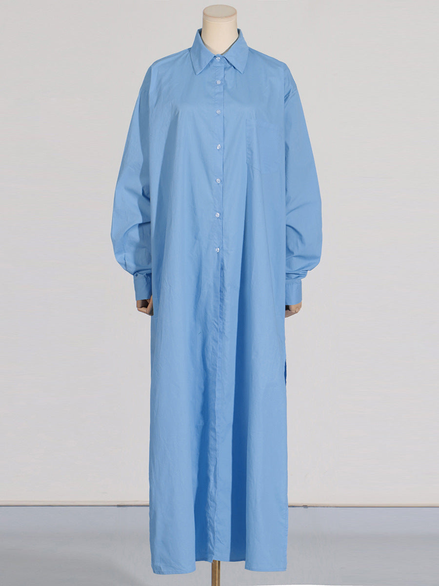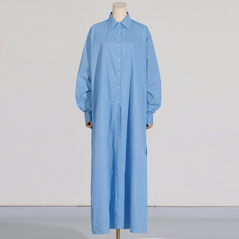 Dadizhimu Korean Casual Style Dress 2025 New Collar High-End Solid Color Design Shirt Long Dress Women's Summer