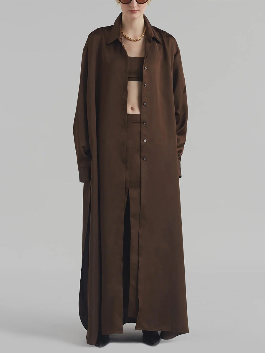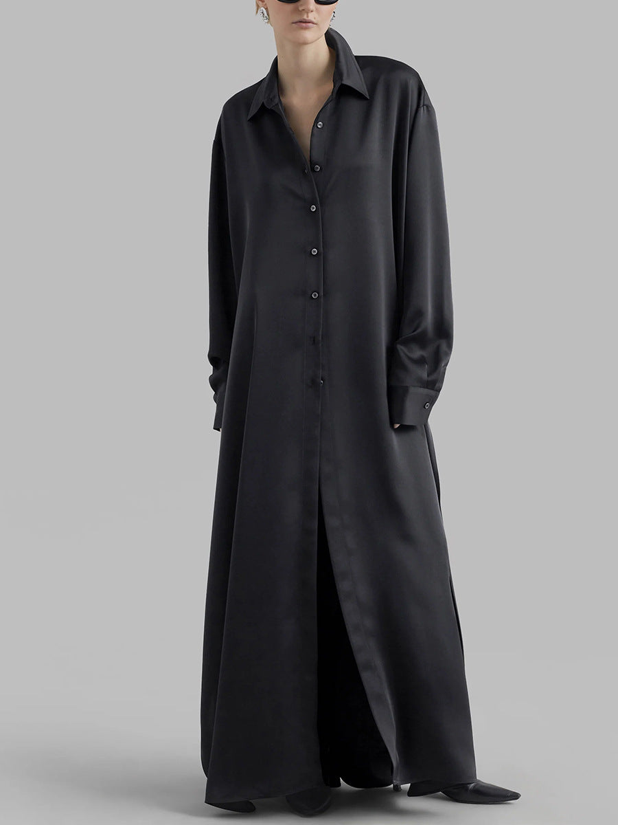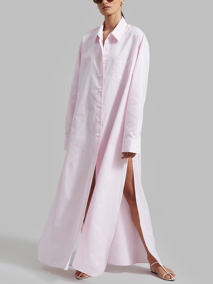 Dadizhimu Korean Casual Style Dress 2025 New Collar High-End Solid Color Design Shirt Long Dress Women's Summer
