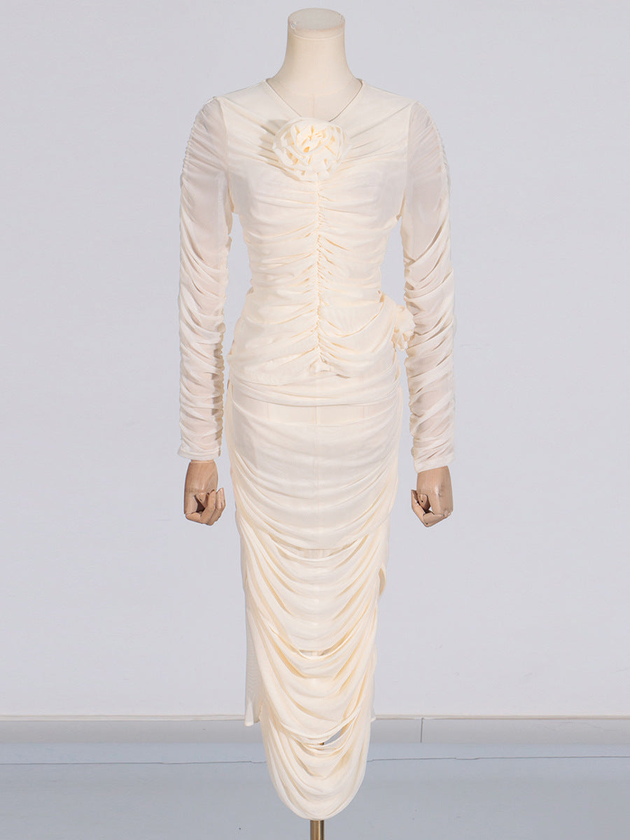 Dadizhimu Name Wind 2025 Spring New Fashion Fold Three-Dimensional Flower Top + Left Hip Skirt Suit Woman