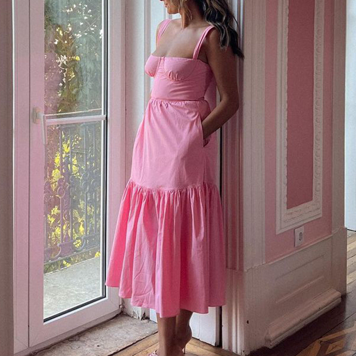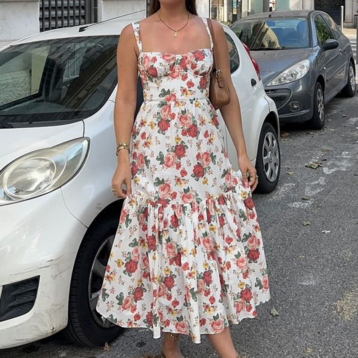 Dadizhimu New Hottie Crumided Sling Dress Body-Dew Long Skirt Print Dress Sweet Spicy Wind