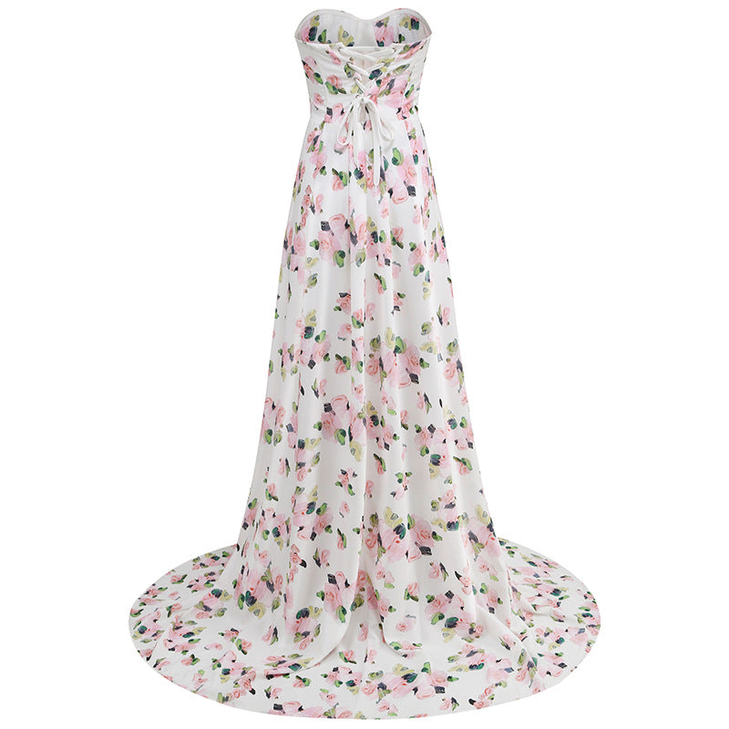Dadizhimu Print Wrapped Braided Strap Dress Woman Fashion Floral Open Fork Long Dress