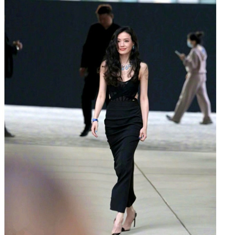 Dadizhimu Qi's Same Black Slings Hollow Body-Claming Dress Long Temperament Tight Dress