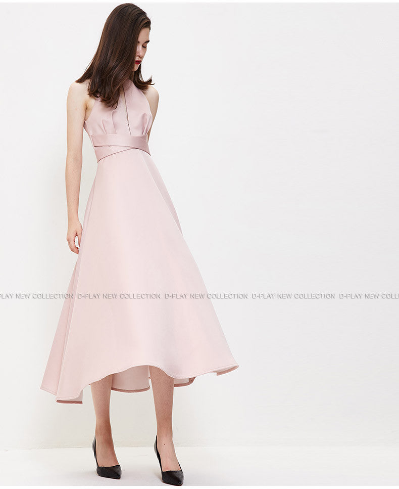 Dadizhimu Series Pink Hanging Neck Dress Strapd To Waist Dress Dress Hollow Dress Dress Bridesmaid Dress