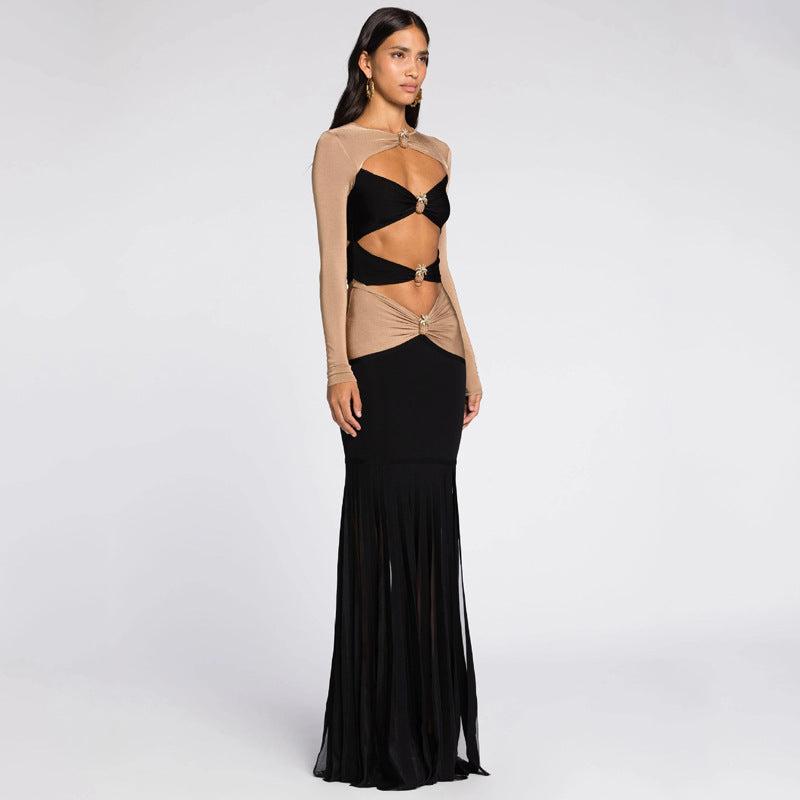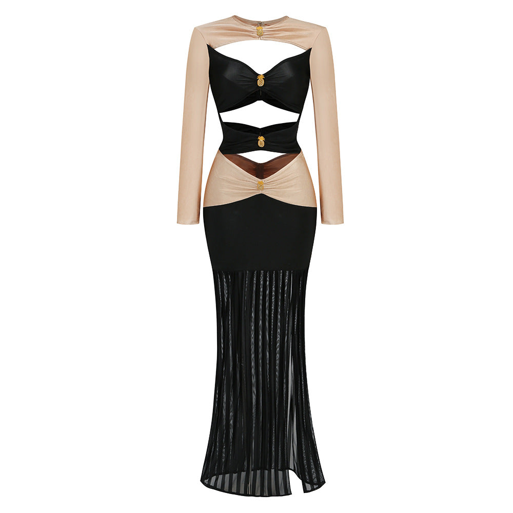 Dadizhimu Sexy High-End Double-Colored Dress Girl Navel Decoration Pineapple Diamond Dress Long Dress
