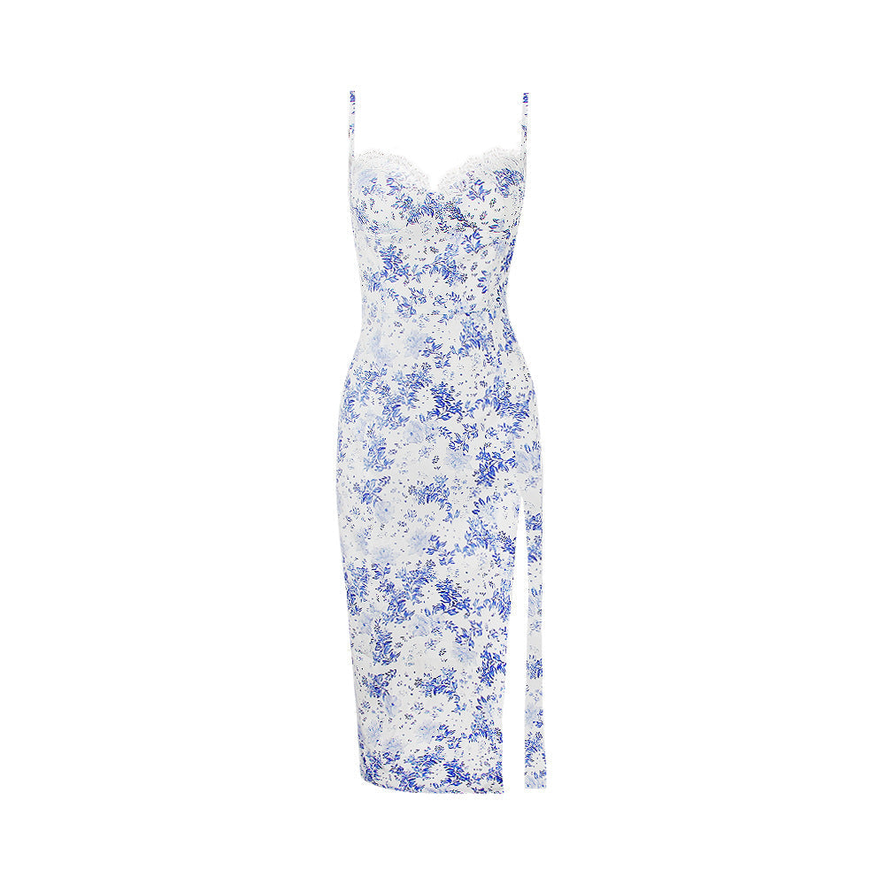 Dadizhimu Sexy Print Sling Dress Summer Women Decorate Back Open Broken Flower Dress Woman