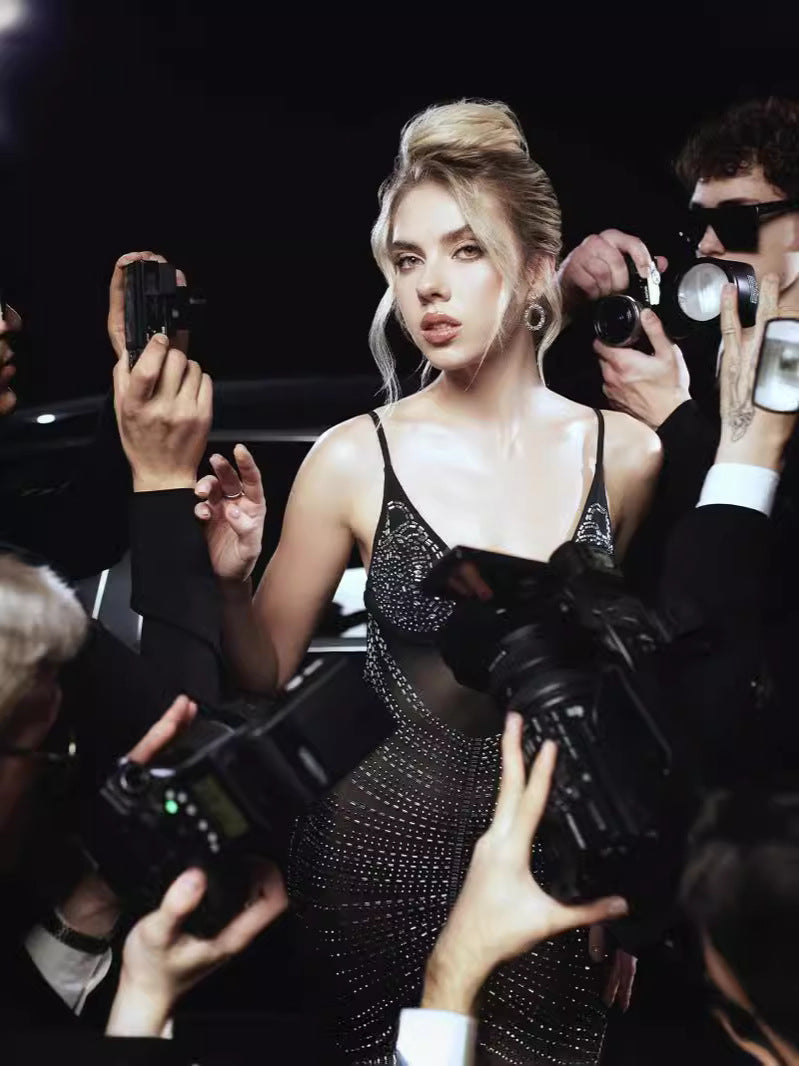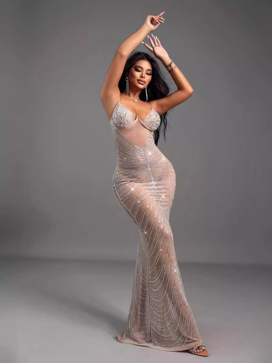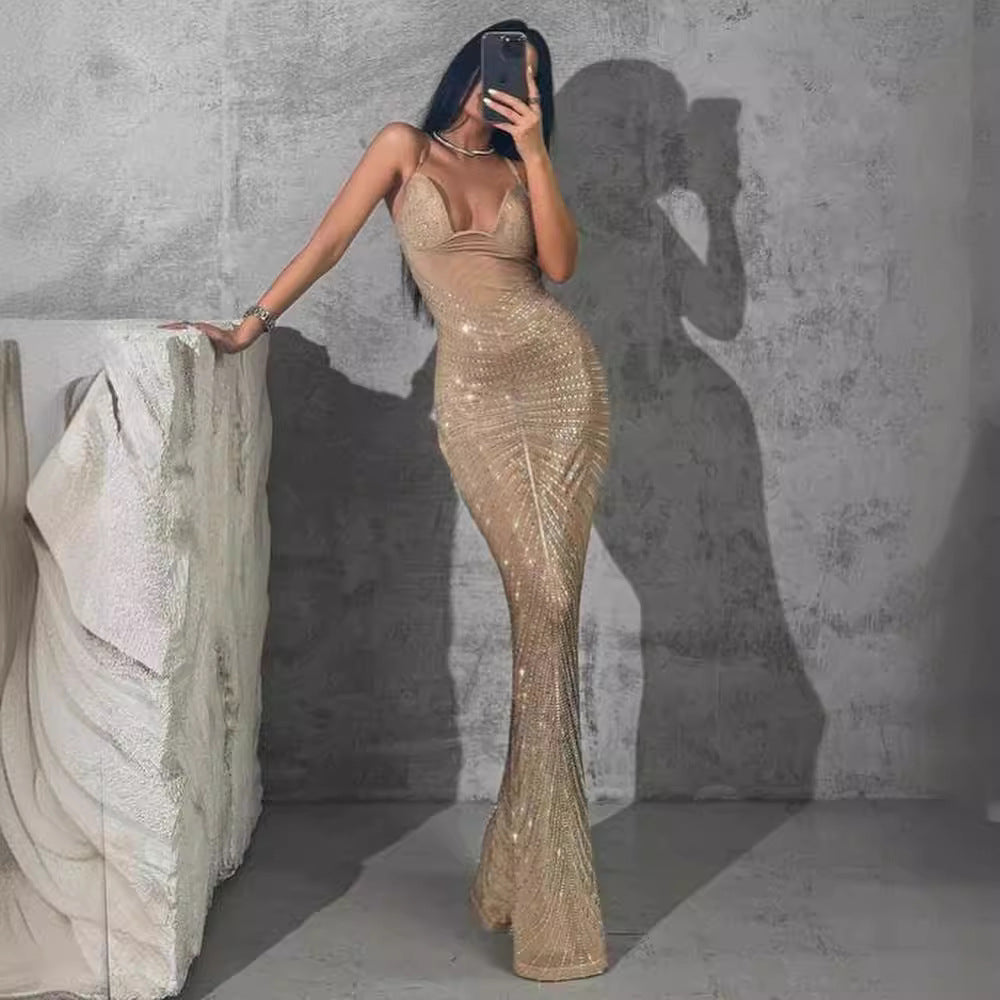 Dadizhimu Sexy V-Neck Sling Sling Shiny Low-Breasted Dress