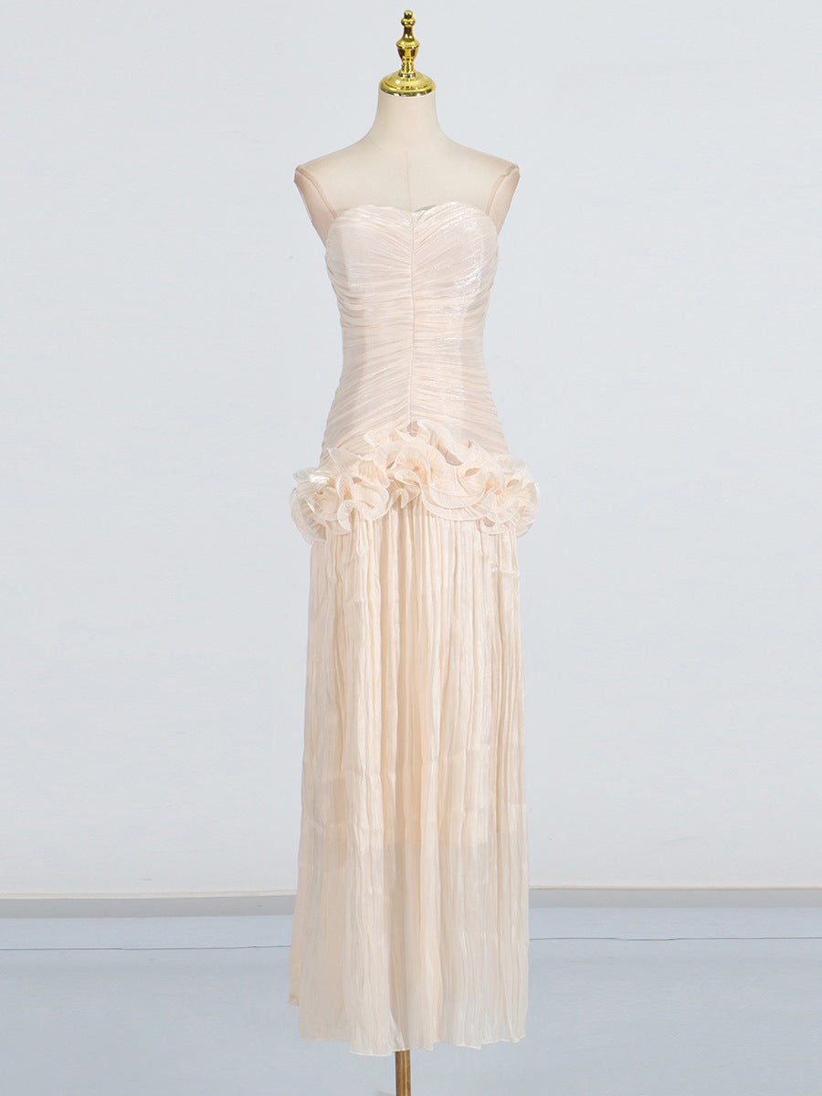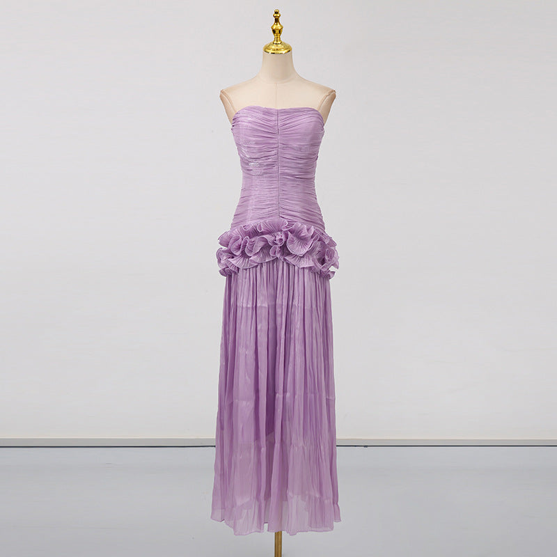 Dadizhimu Small Scented Bra Dress Dress 2025 New Niche Splicing Wooden Ear Design Long Dress Women's Summer