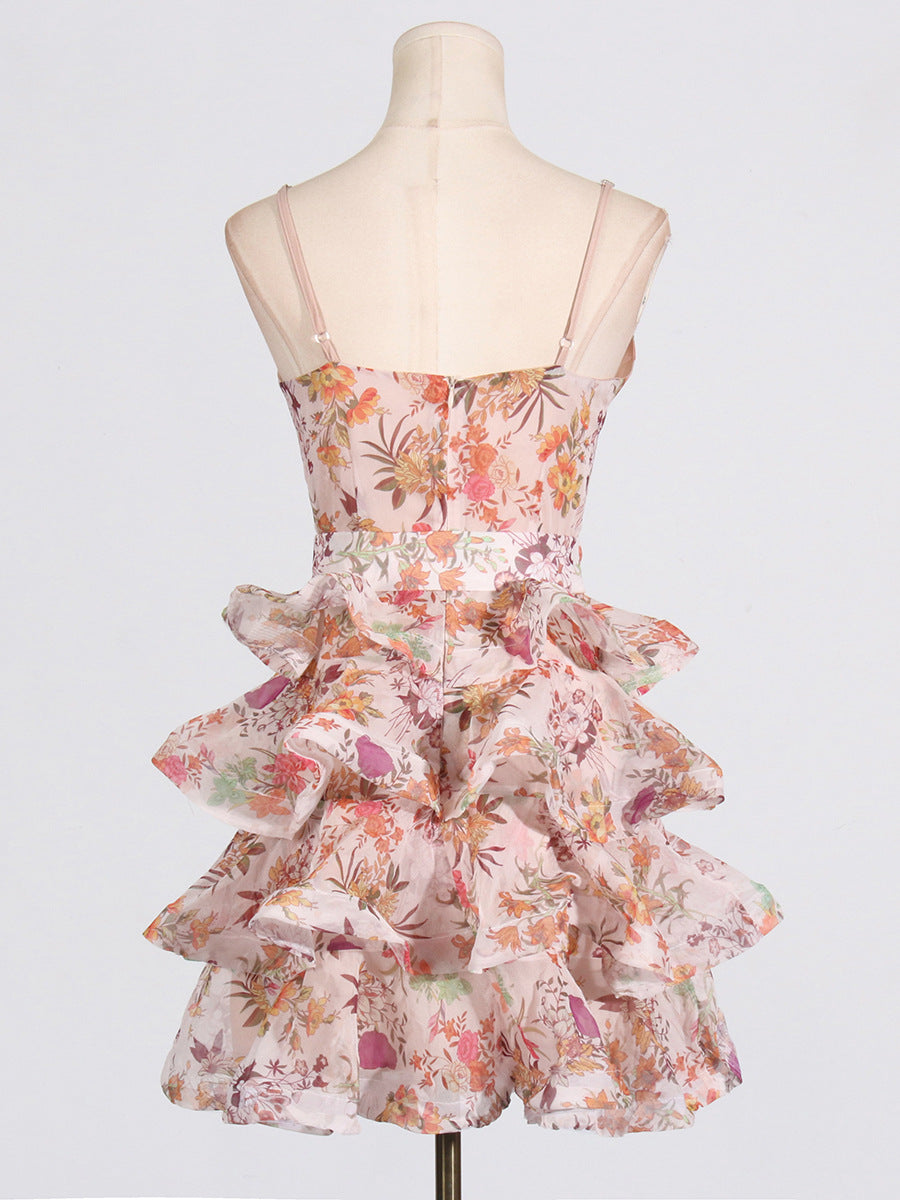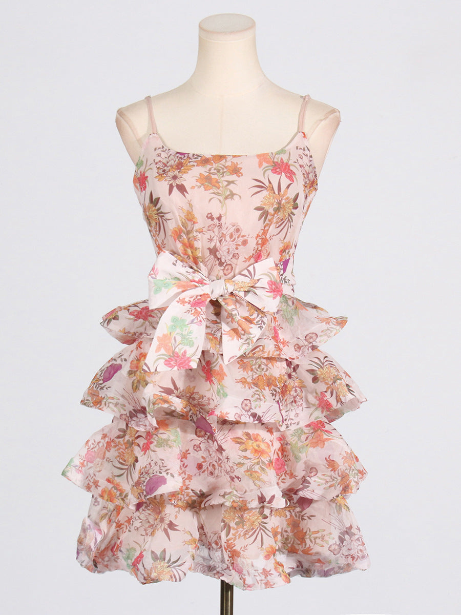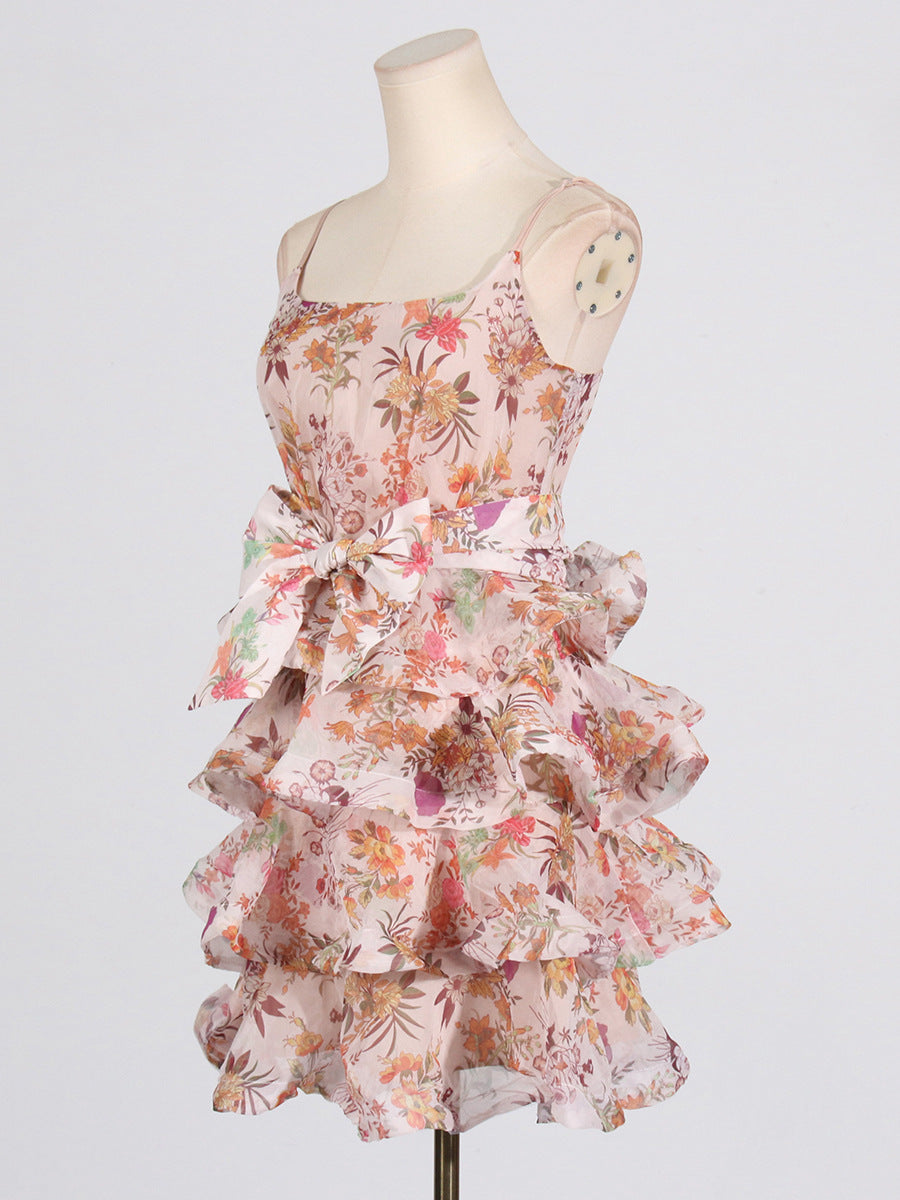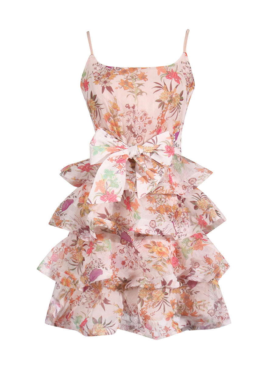Dadizhimu Spice Girls Short Dress 2025 Spring New Collar Printing Tie With Thin Sling Dress Female Tide