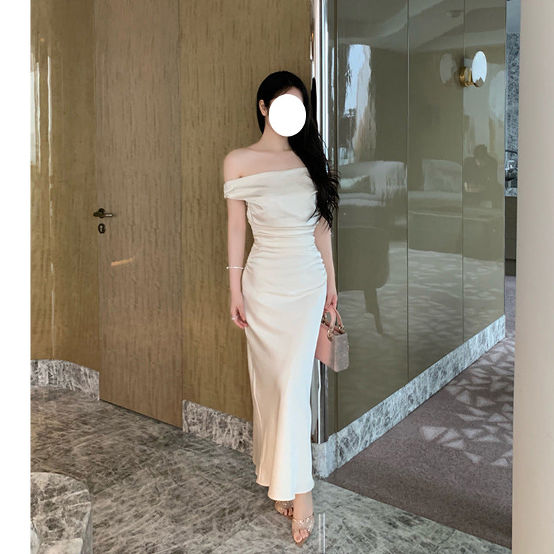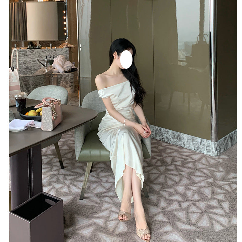 Dadizhimu Study Dress Elegant Bag Hip Dress A Word Shoulder-Singy-Faced Dress Women's French Dating Party Dress