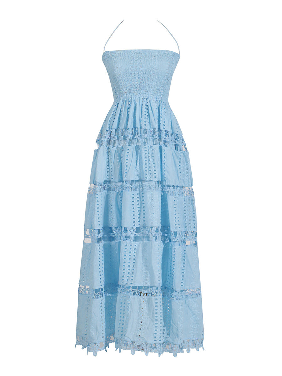 Dadizhimu Temperament Casual Dress Spring 2025 New Fashion High-End Embroidery Hollow Bra Dress Female Trend