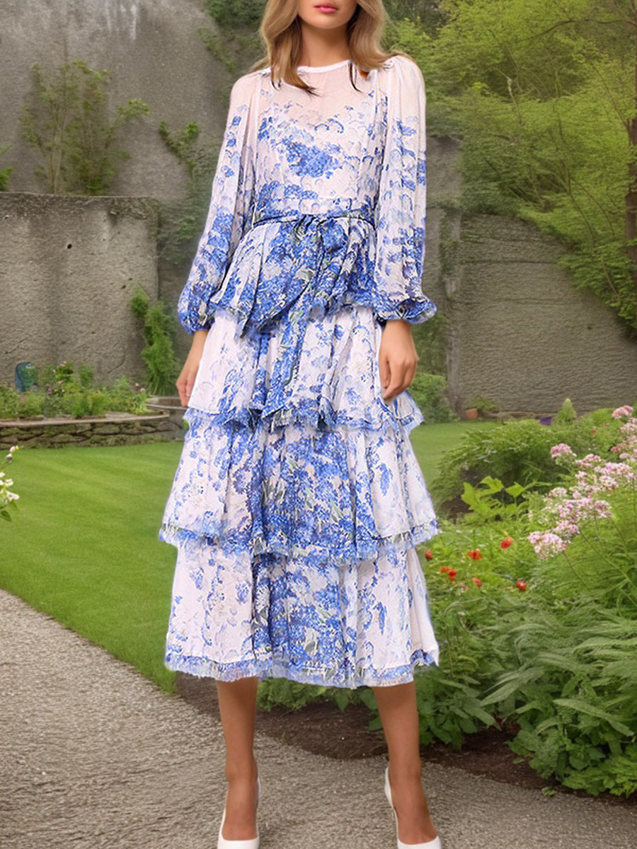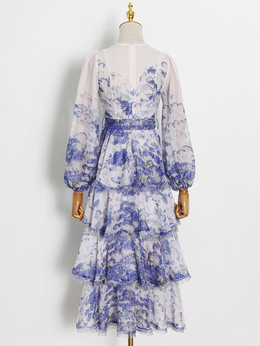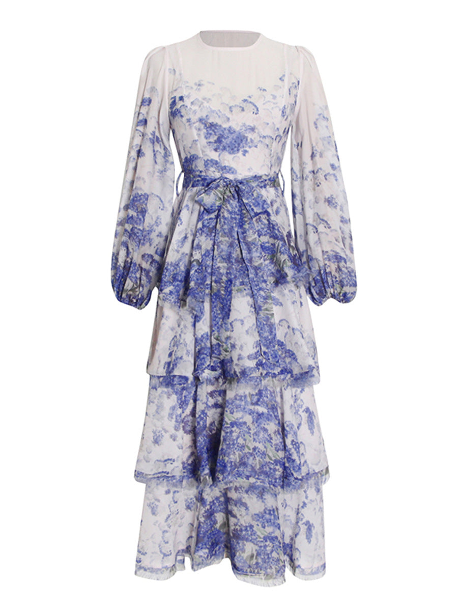 Dadizhimu Temperament Elegant Dress 2025 Spring New Fashion Printed Lantern Sleeves With High-End Feel Dress Women's Trend