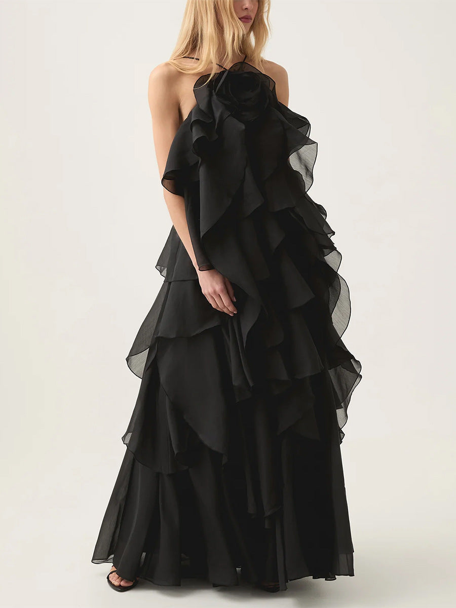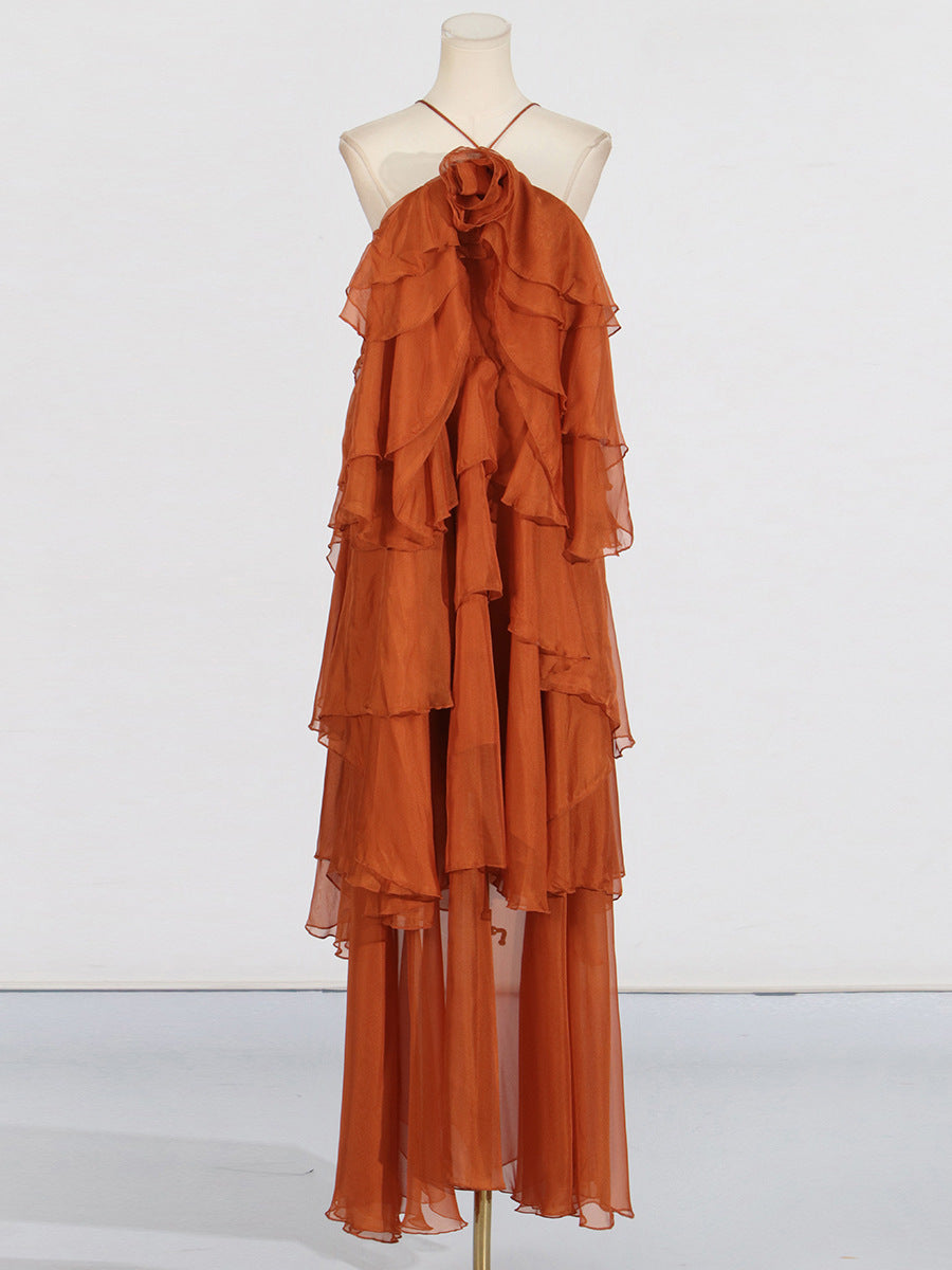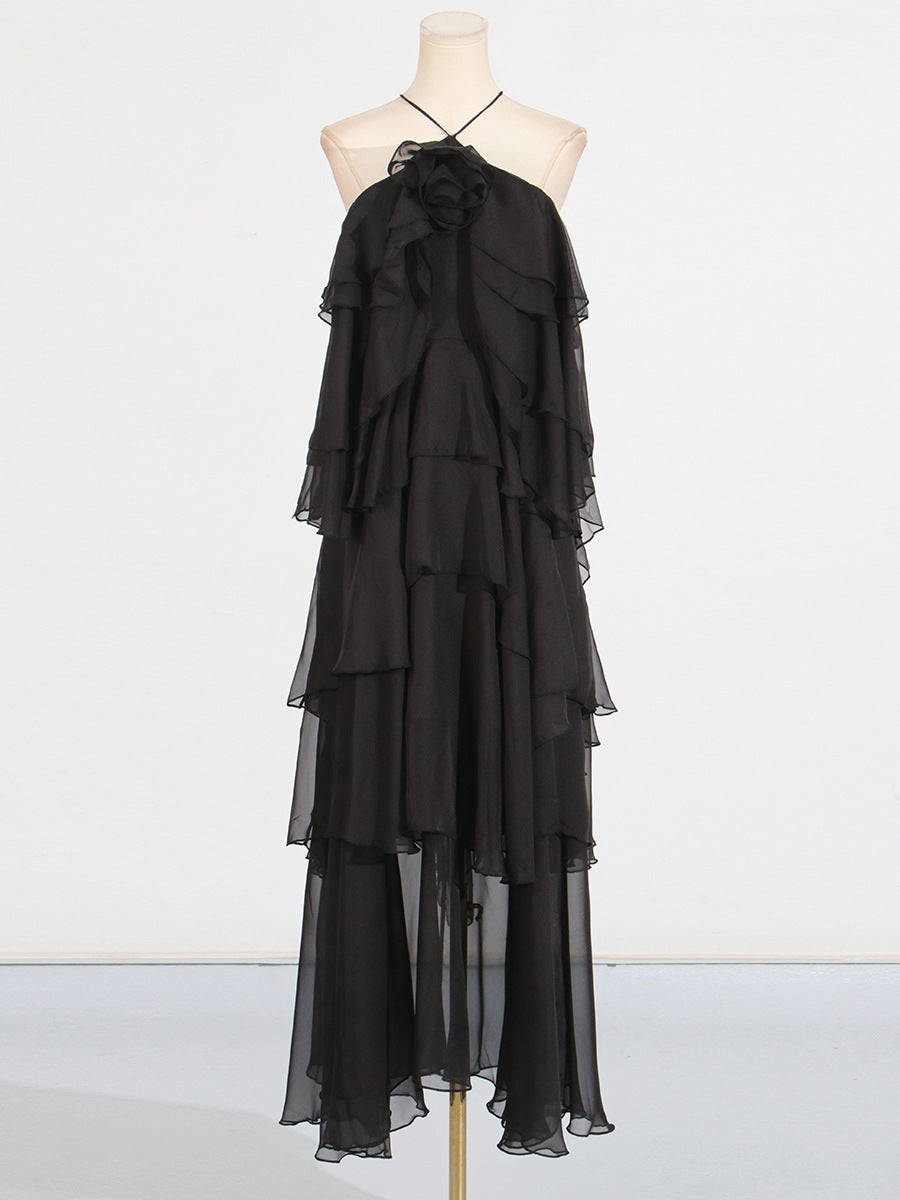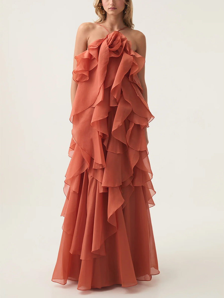 Dadizhimu Temperament Famous Style Splicing Lotle Leaf Side Dress 2025 Summer New Hanging Neck Design Long Dress Dress Woman