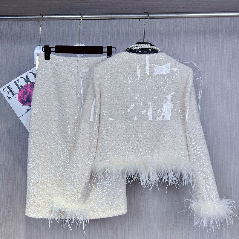 Dadizhimu Temperament French Small Fragrant Suit Women's New Fur Short Coat + Half-Dress Two-Piece