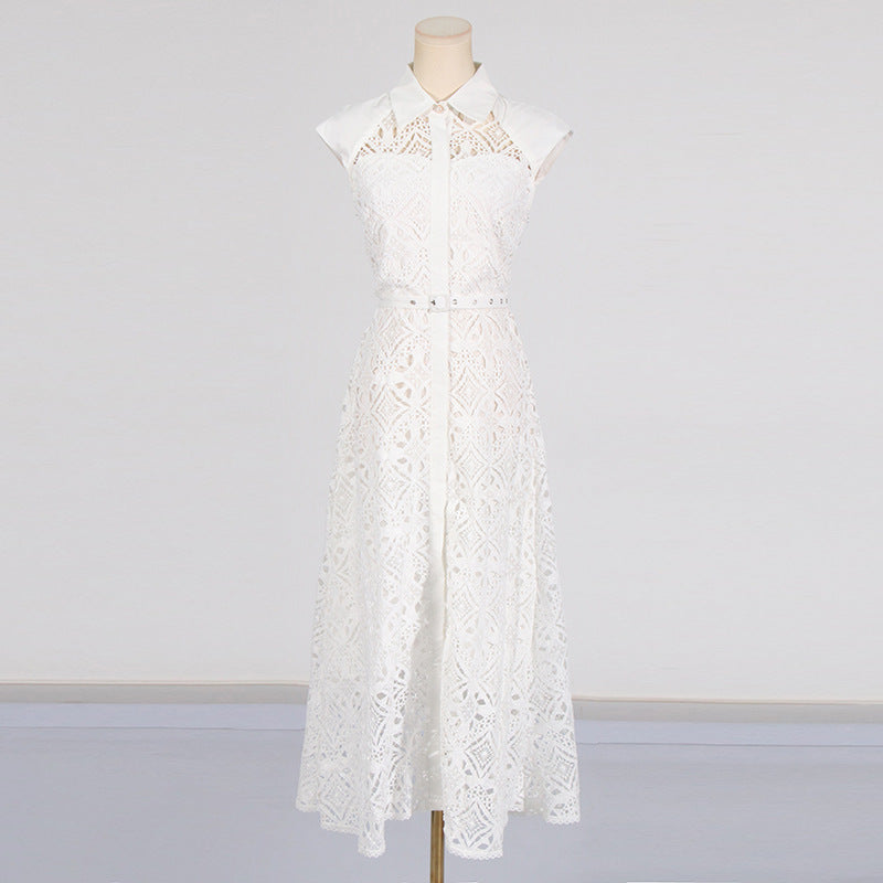 Dadizhimu Temperament High-End Long Dress 2025 Spring New Collar Perspective Hollow Design Slim Dress Woman