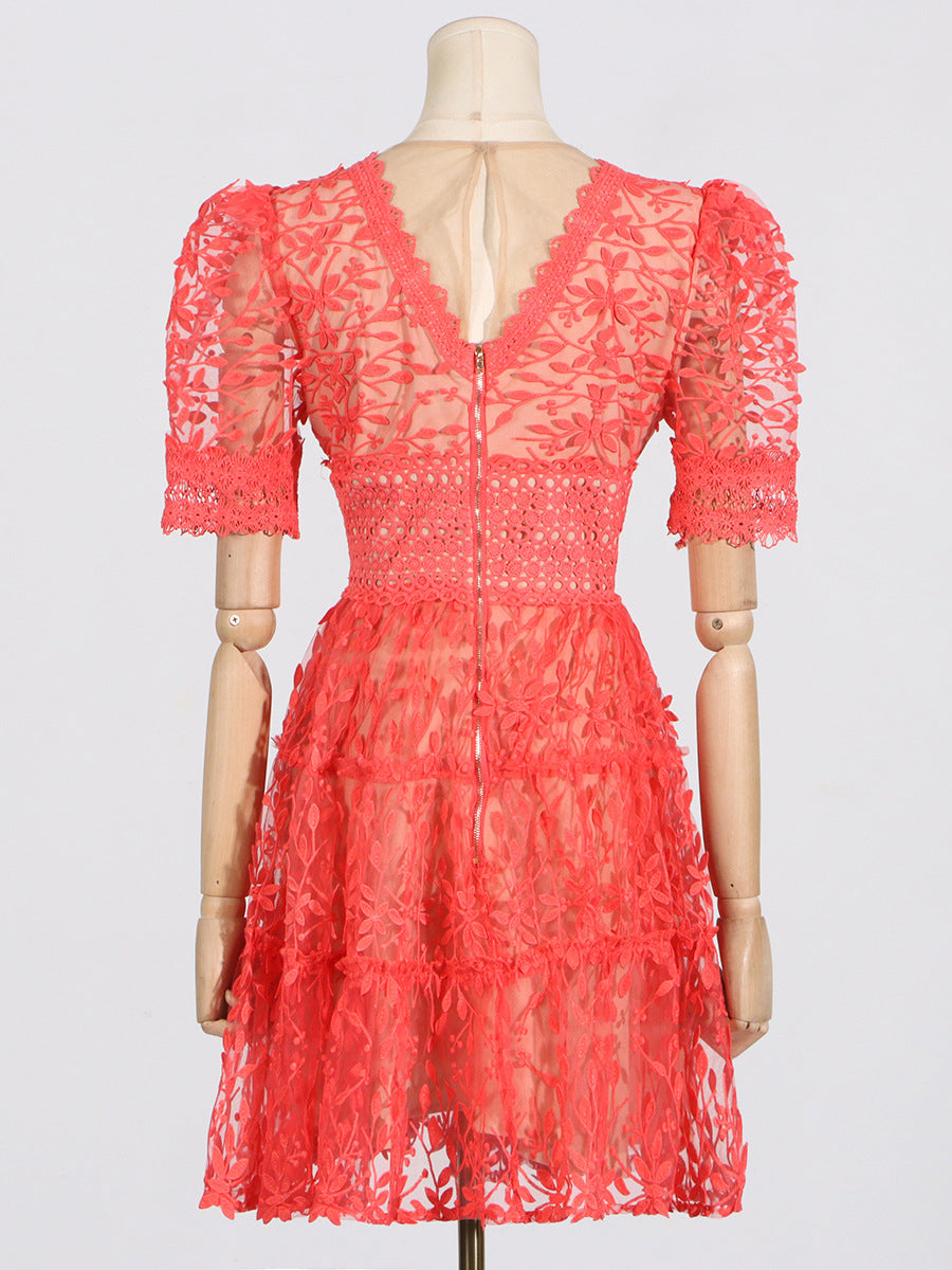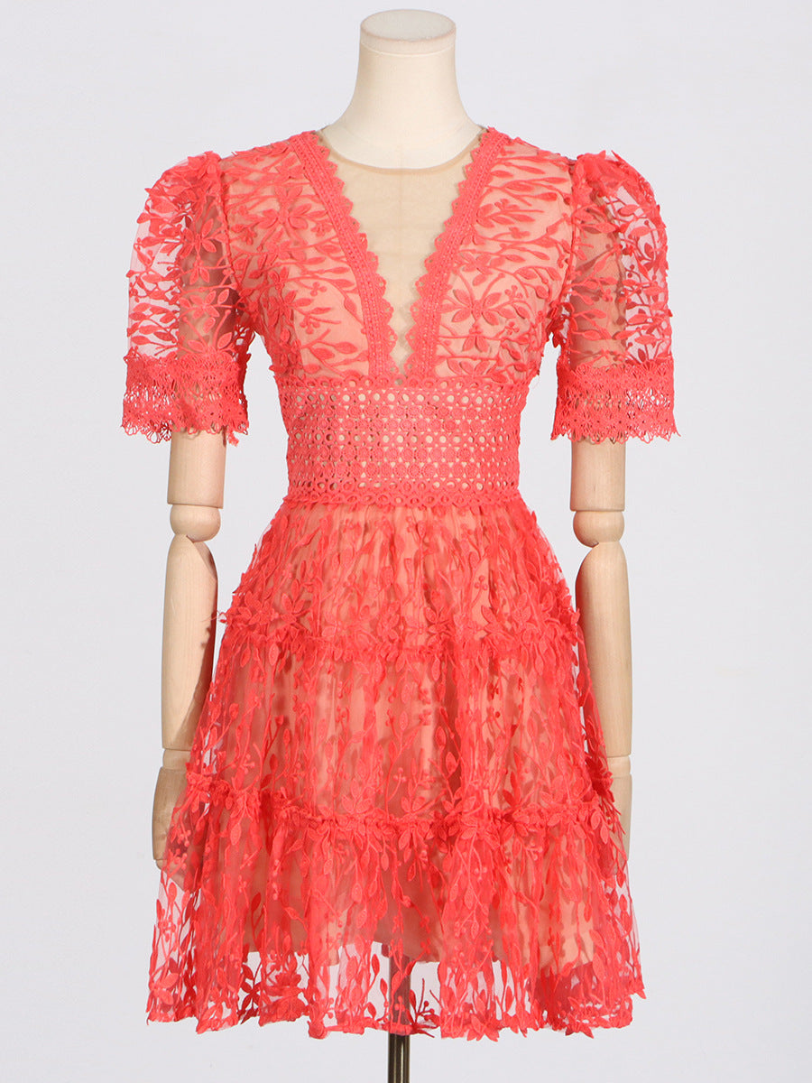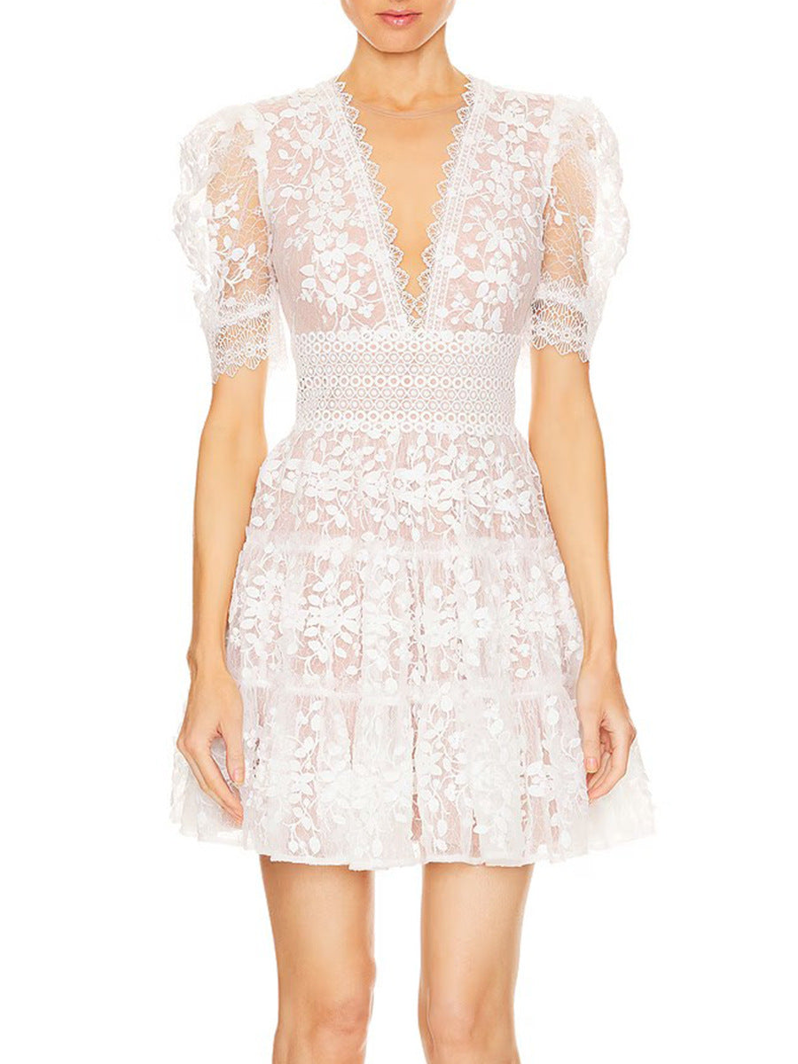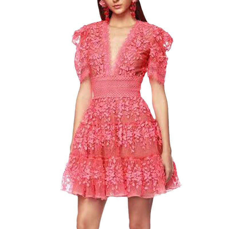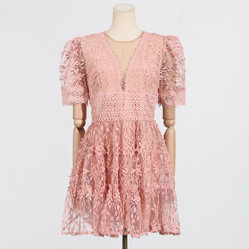 Dadizhimu Temperament High-End Short Dress 2025 Spring New V-Neck Bubble Bubble Sleeve Embroidered Waist Thin Dress Woman