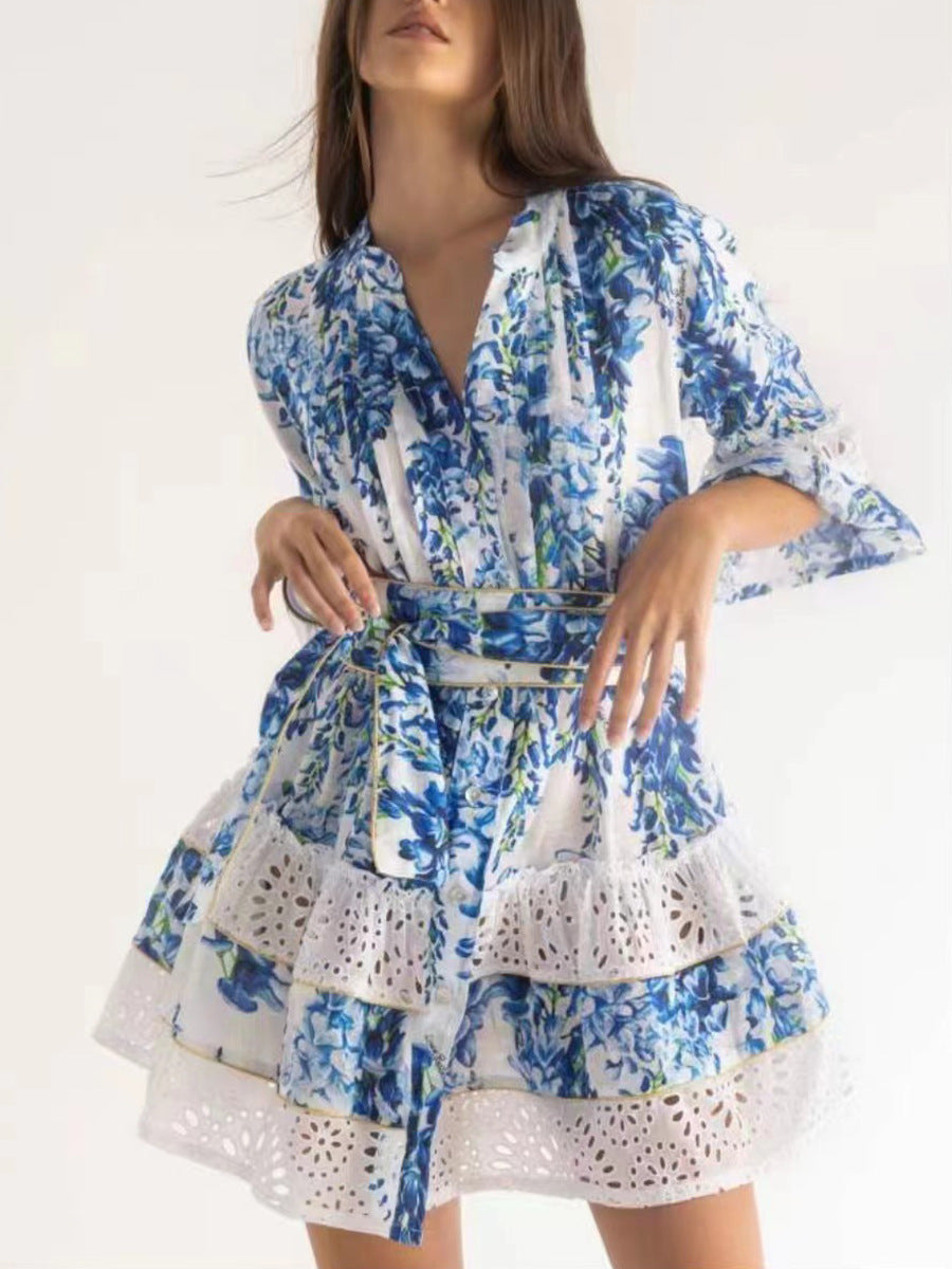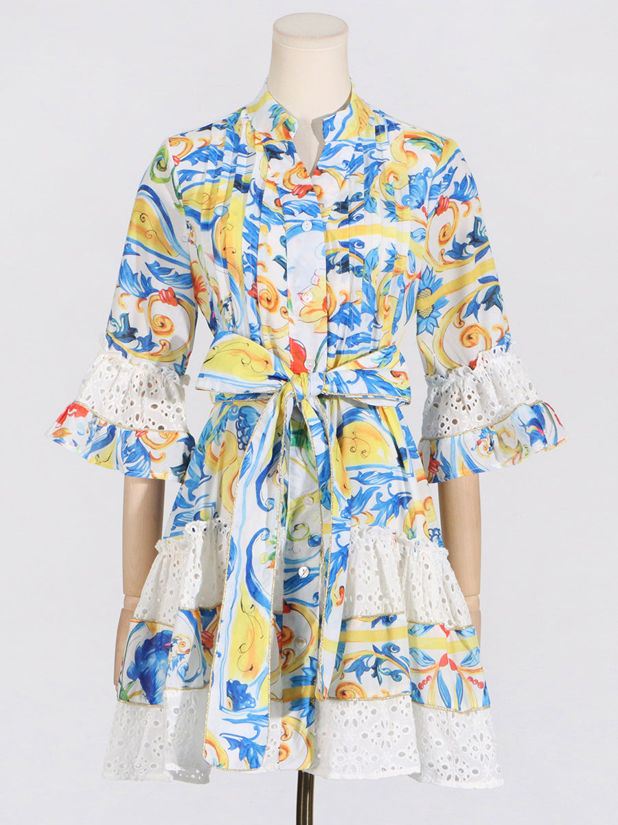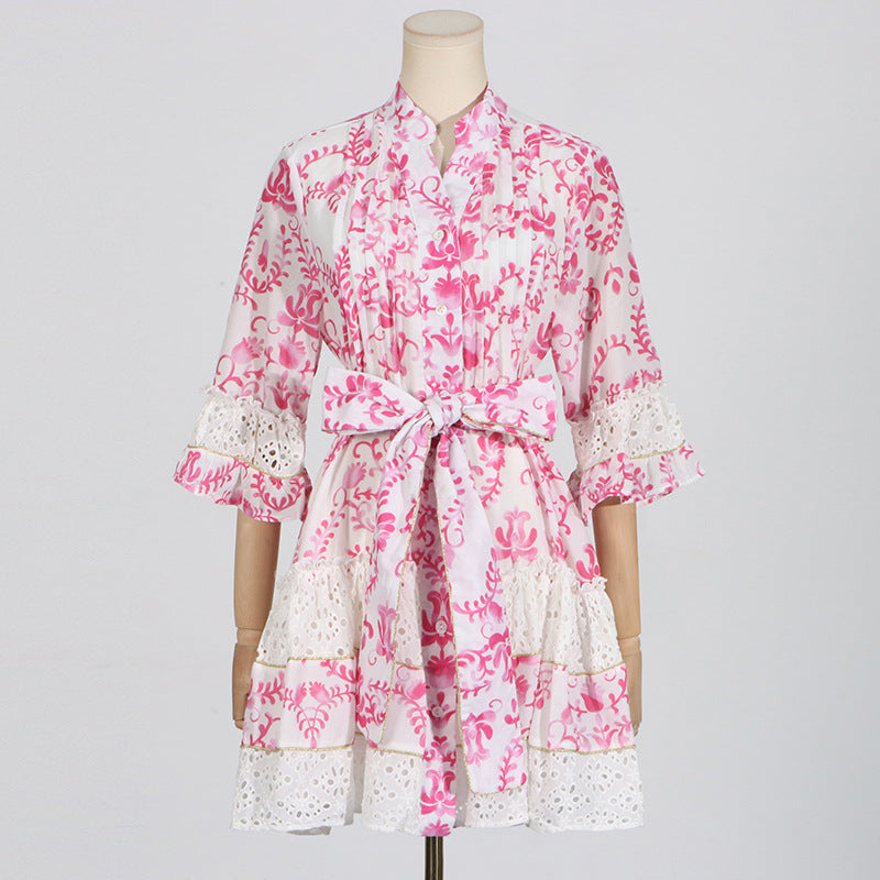 Dadizhimu Temperament Seaside Resort Style Collar Skirt 2025 New Design Printing Collar Collar Dress Woman