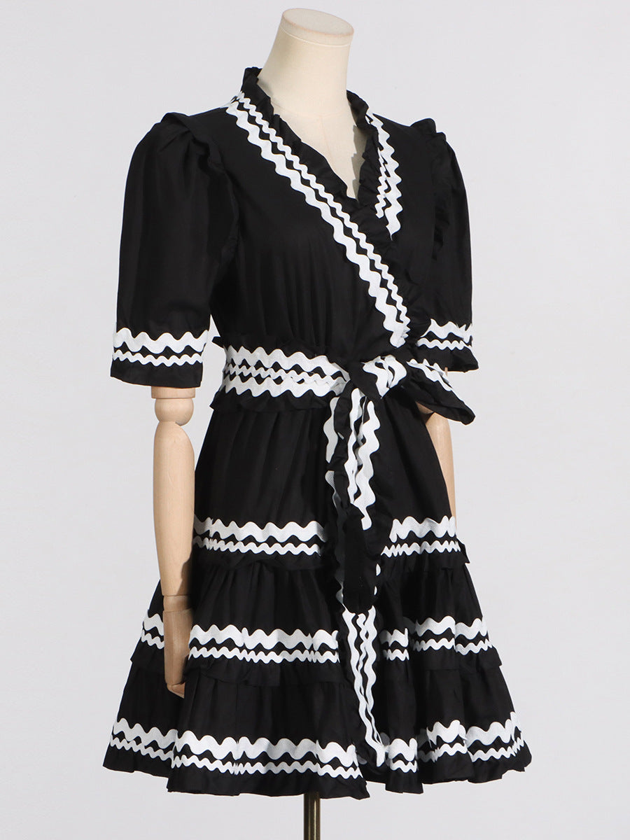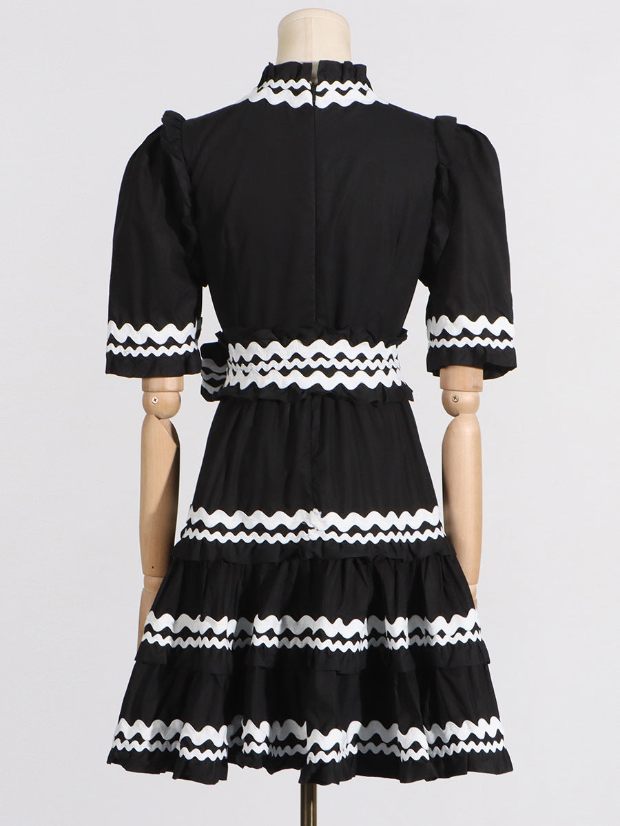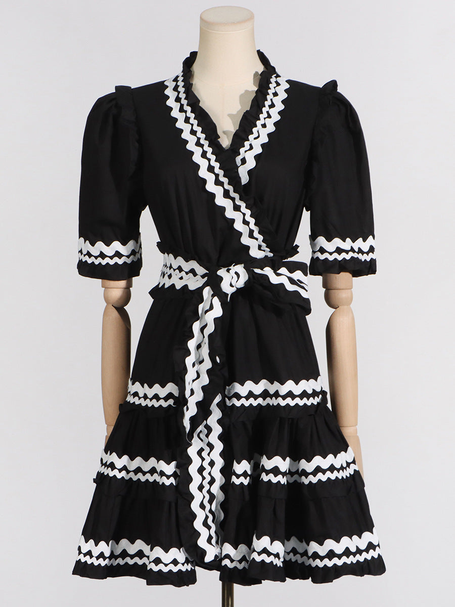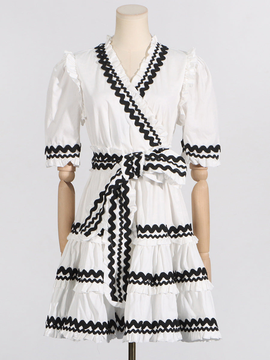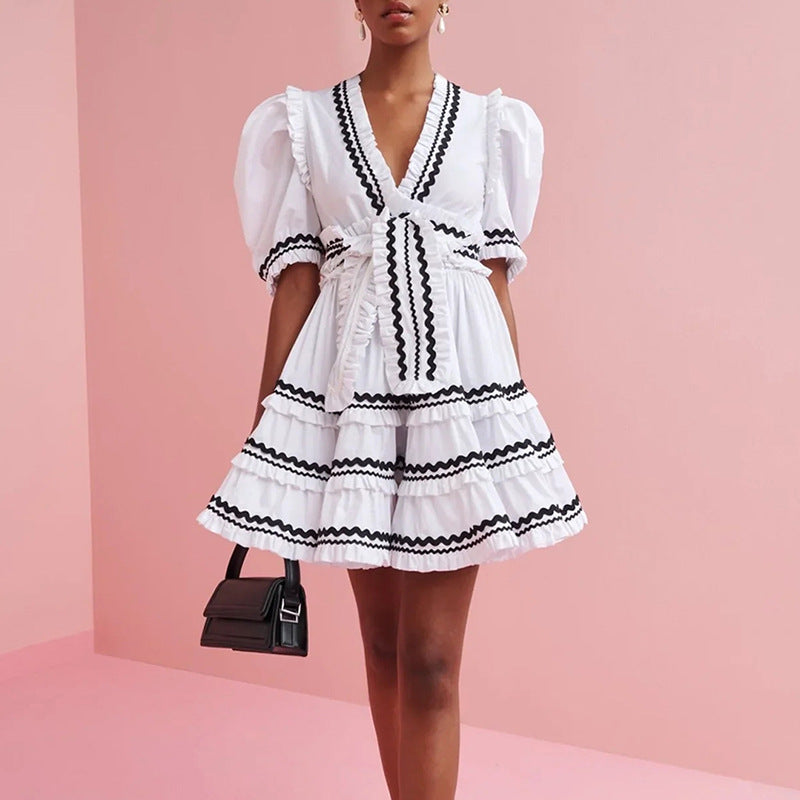 Dadizhimu Temperament Short Dress 2025 Spring New Splicing Color High-End Lotus Leaf Side To The Waist Thin Dress Woman Trend