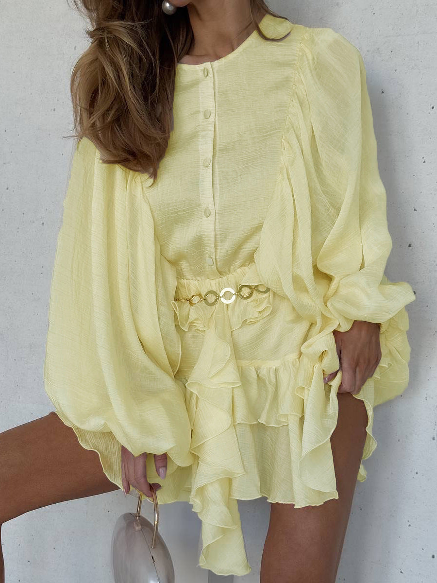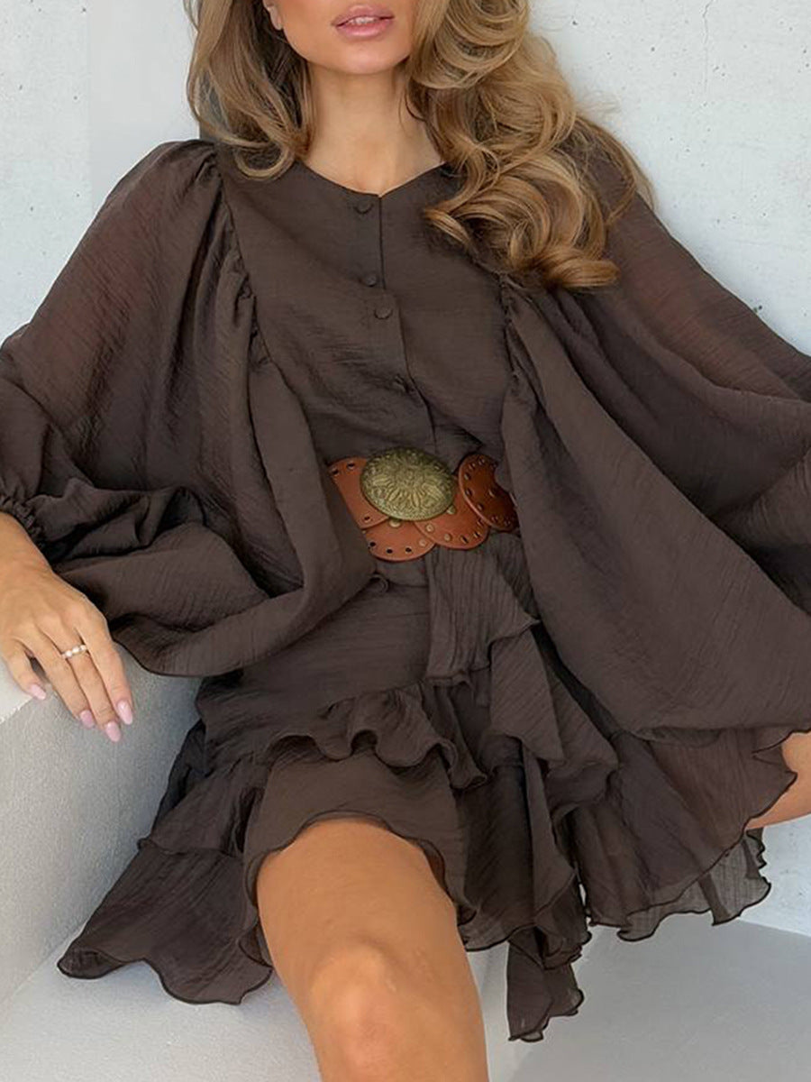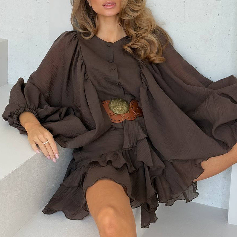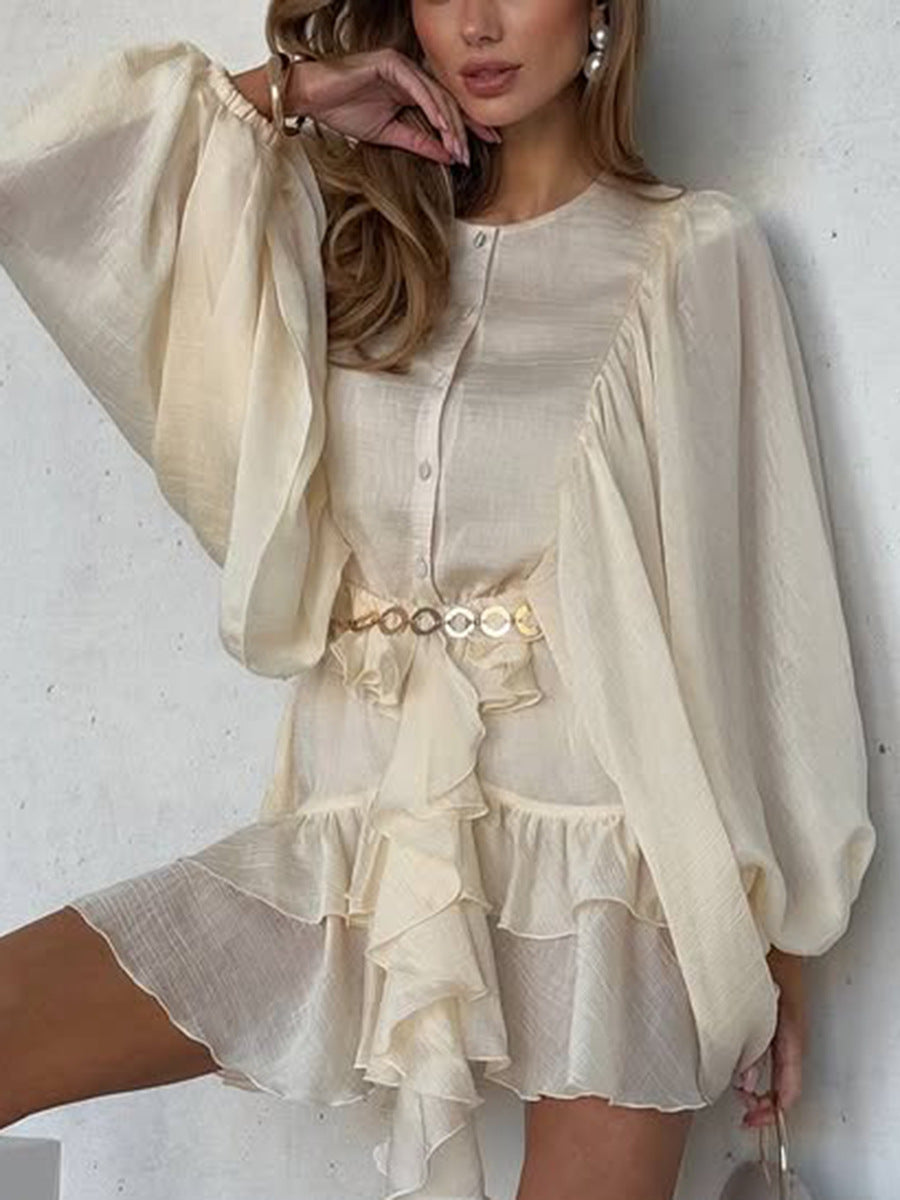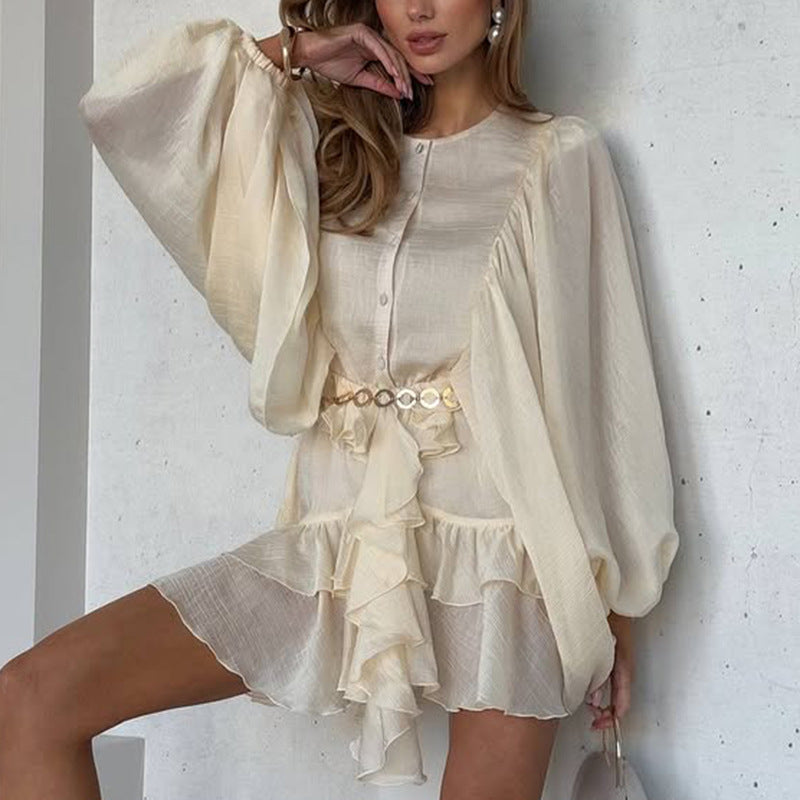 Dadizhimu Thin Splicing Lotus Leaf Side Design Short Dress 2025 New Temperament Short Dress Women's Summer