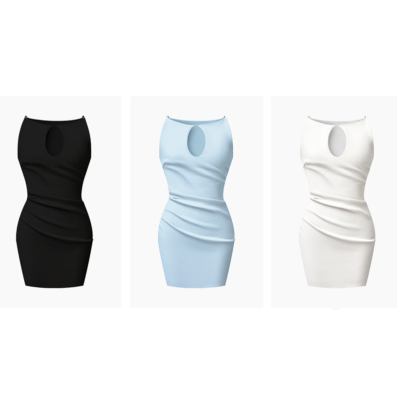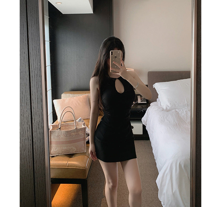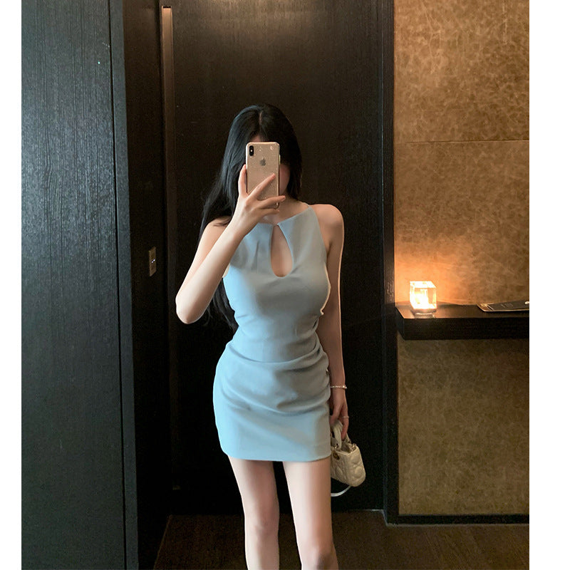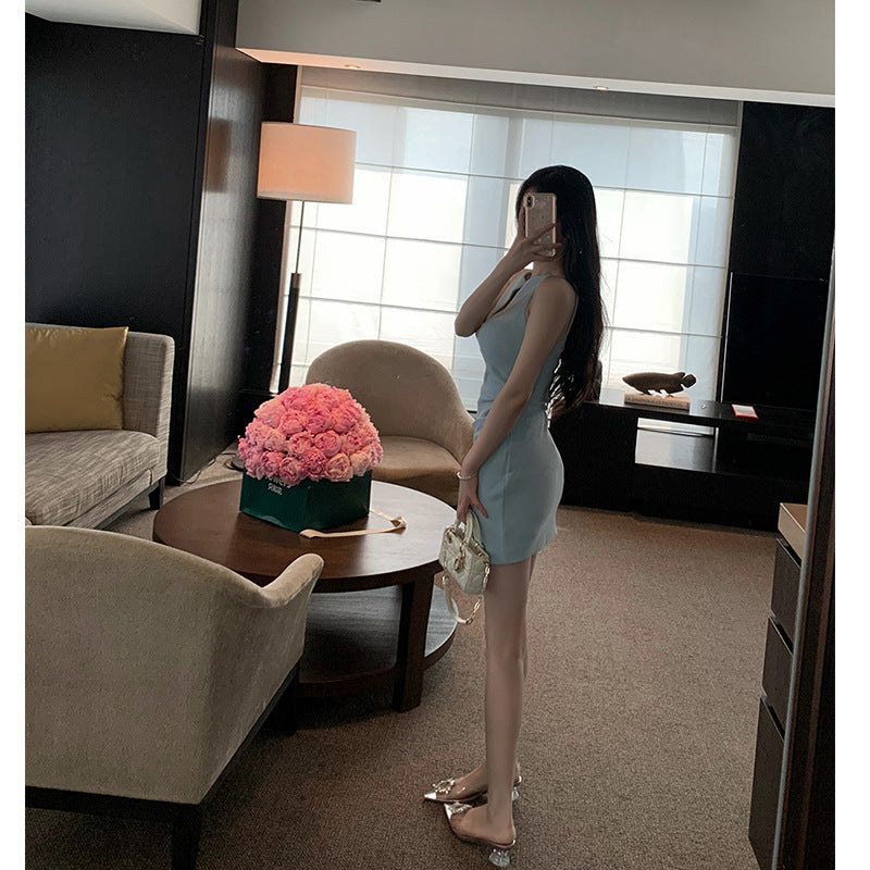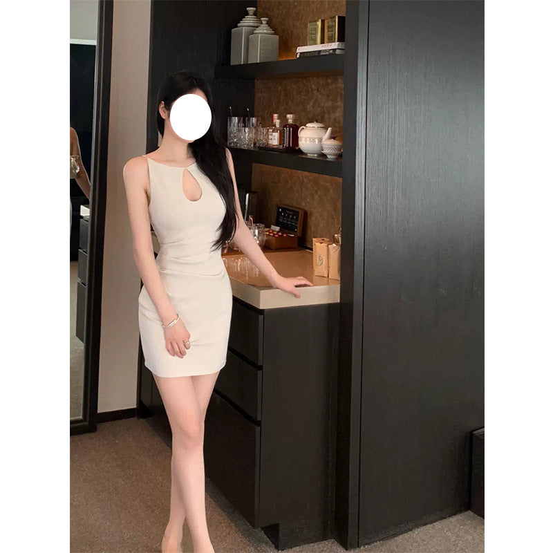 Dadizhimu Version Is Very Good To Wear Solid Color Minimalist Style Dress Women's French Pure-Want Style Bag Hip Dress Ken Bean Short Skirt No