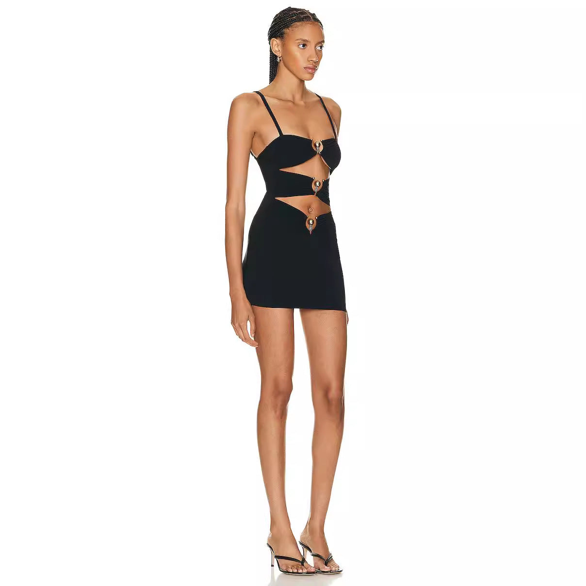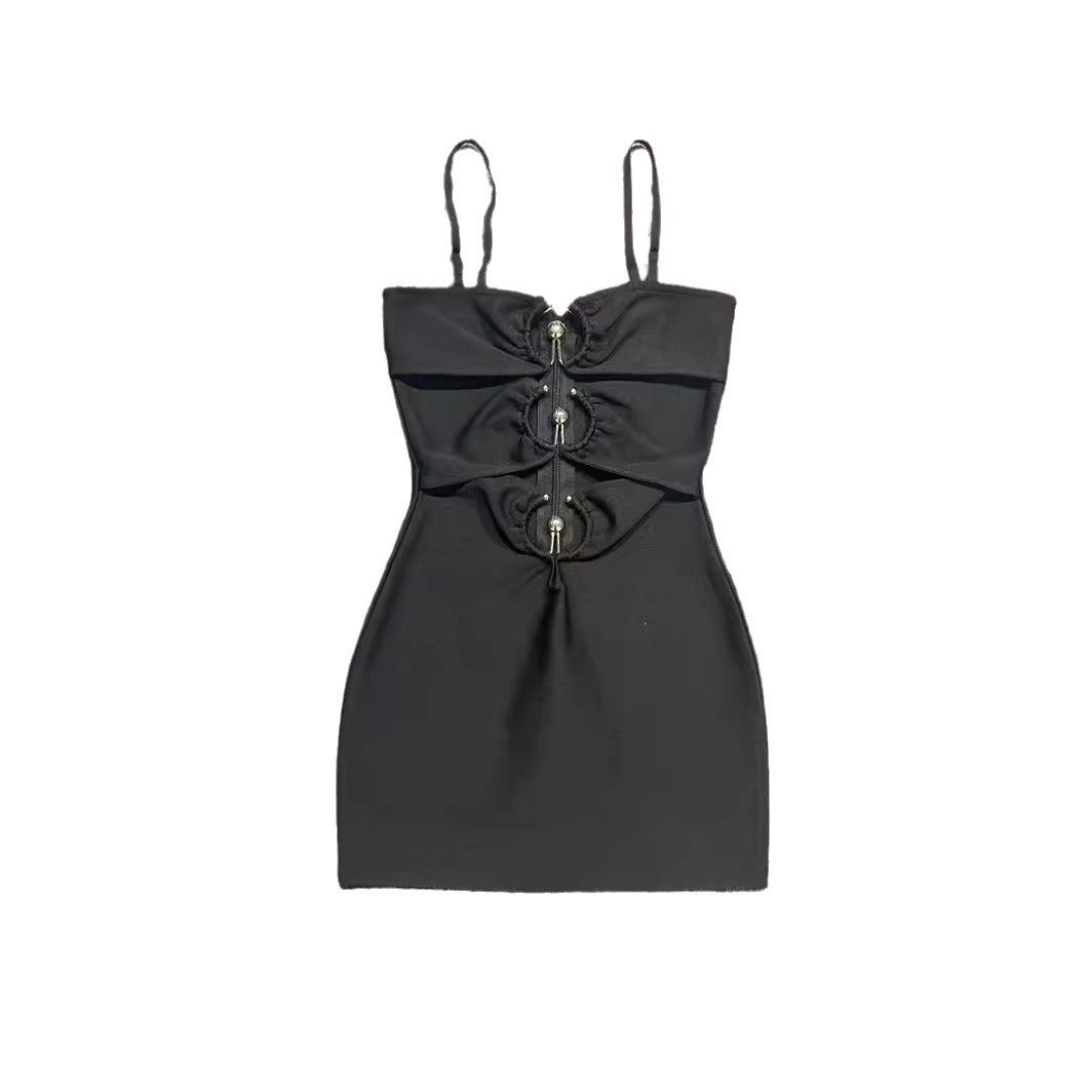 Dadizhimu Wind High Quality Women's Dress Slings Low-Chested Sexy Hollow Bodyd Banding Skirt