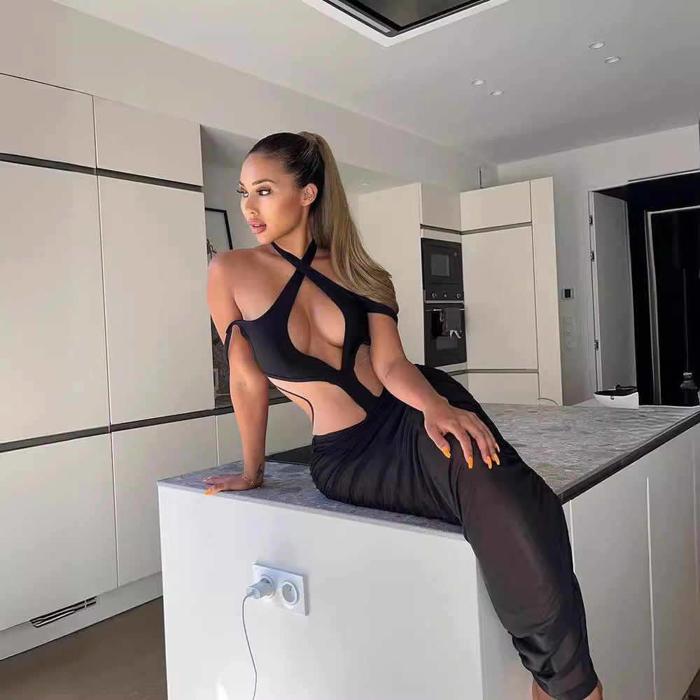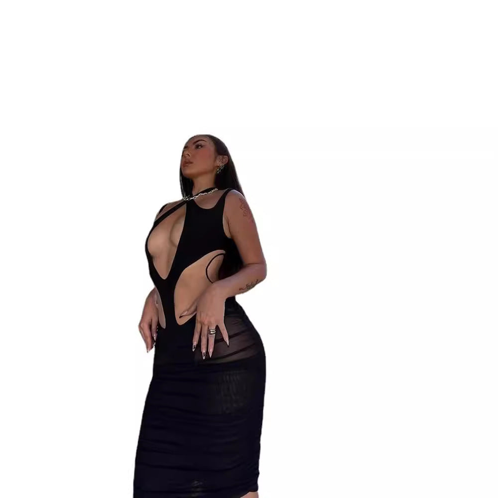 Dadizhimu Women's Clothing INS Sexy Low-Breasted Back Net Yarn Hollow Personality Repair Dress Bandid Skirt