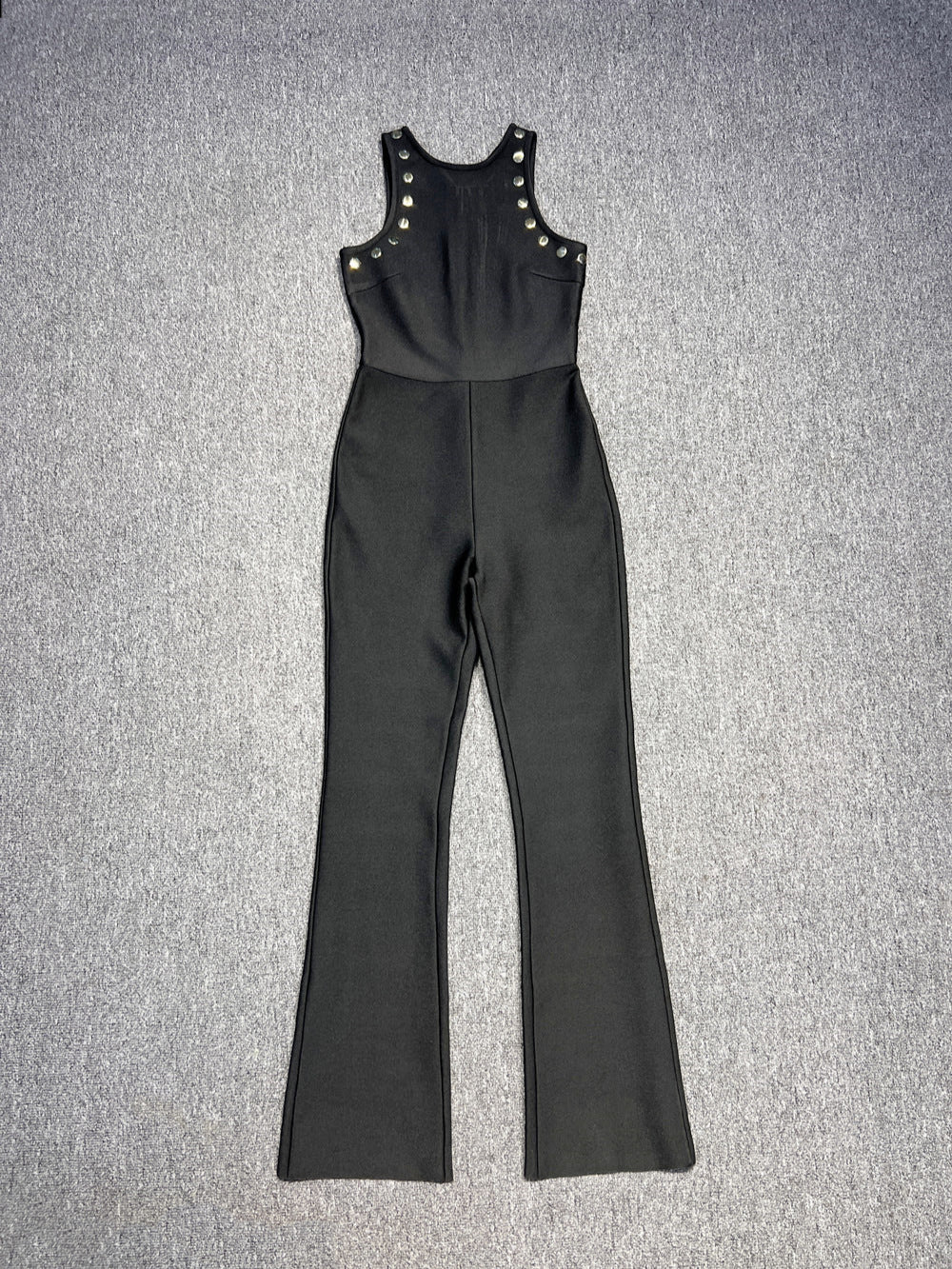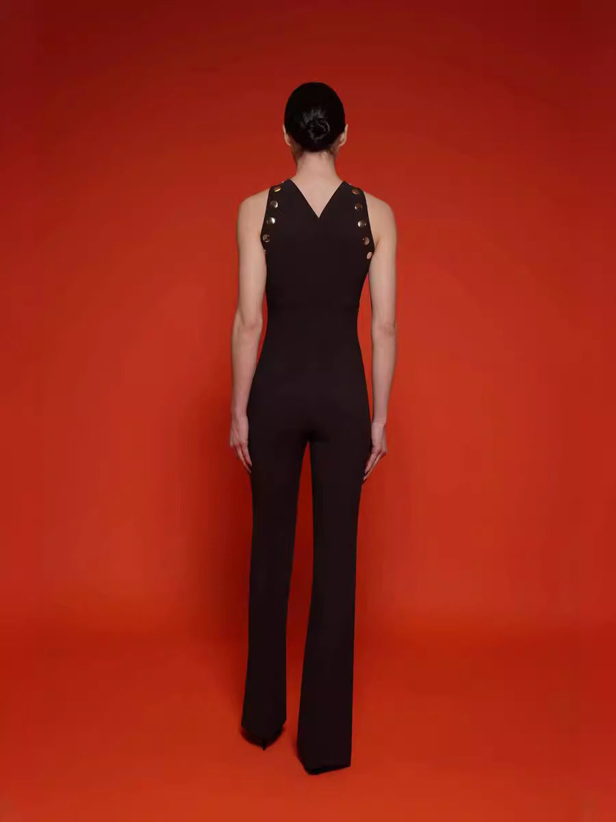 Dadizhimu Women's Clothing Jumpsuit Sleeveless High-Waisted Round Collar Slim Body Jumpsuit Trousers