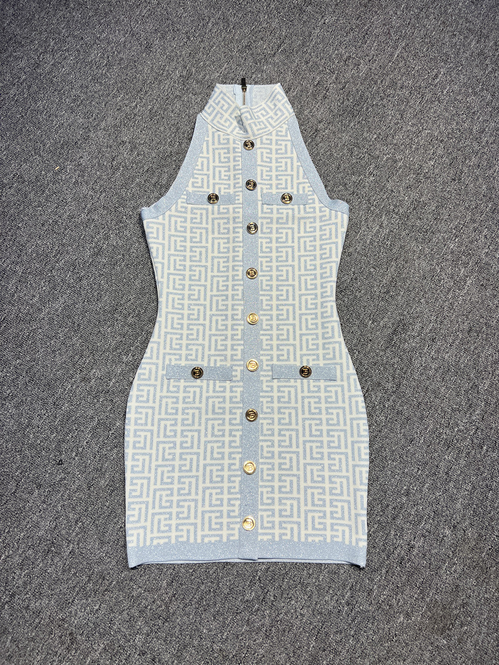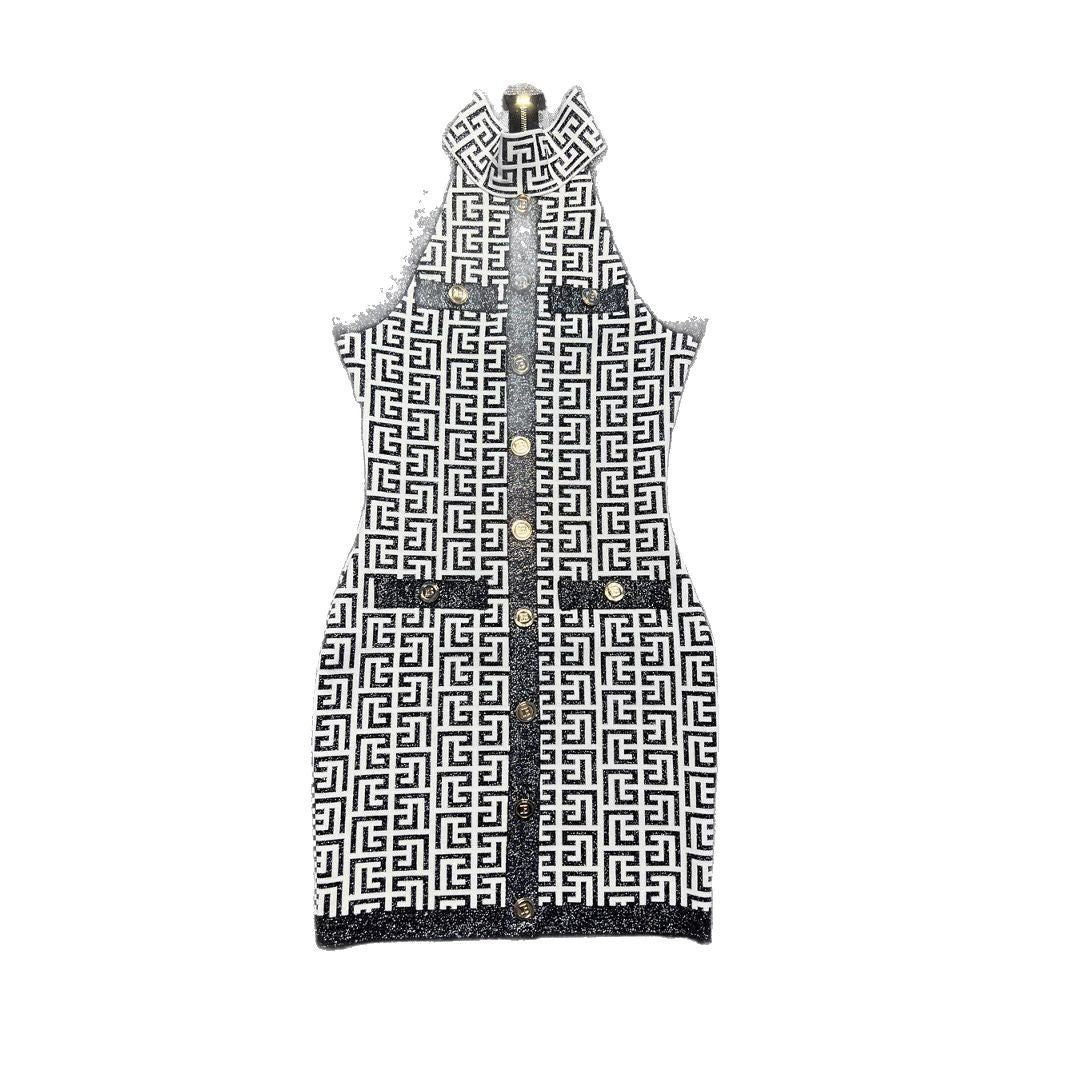 Dadizhimu Women's Half-High Collar Hanging Neck Fashion Commuting High-End Fat Summer Sleeveless Cedula High-Waisted Banded Dress