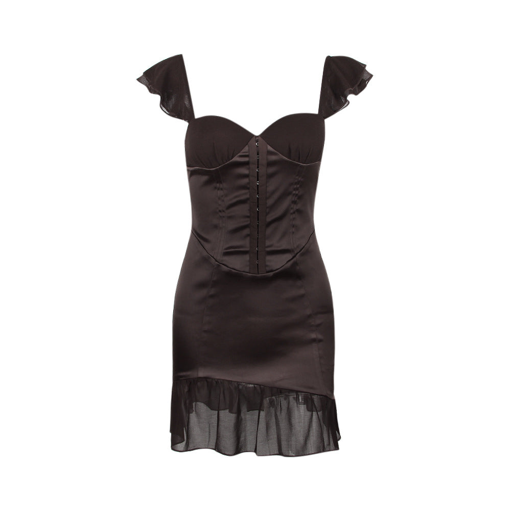 Dadizhimu Women's New Color Chiffon Splicing Sling Skirt Square Collar Shoulder Dress Short Dress Dress Woman